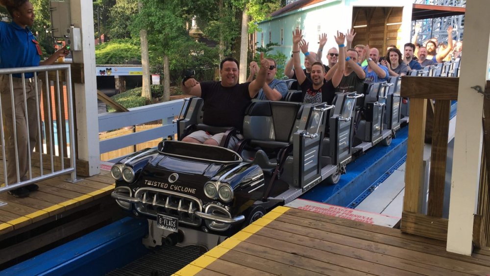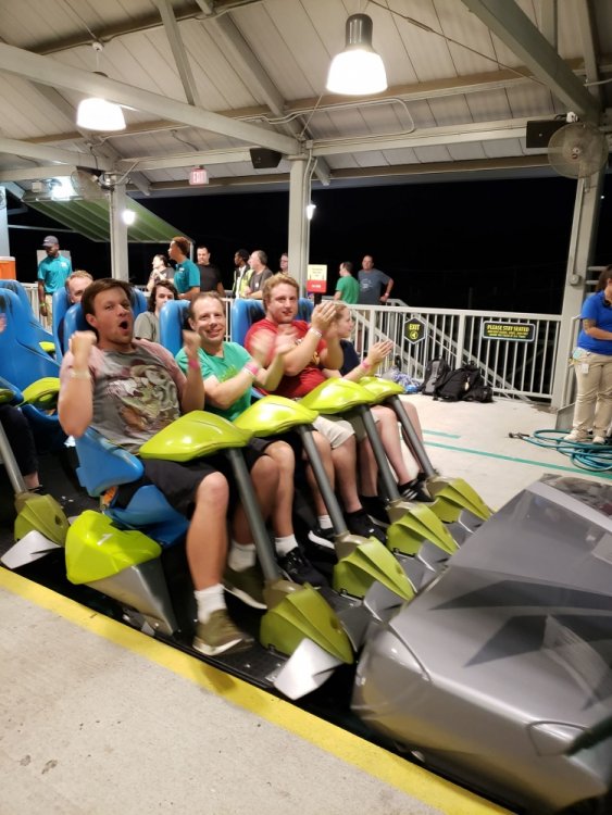 5. Hey TPR! I realized that I could use my time on the L for something productive, like putting together a trip report! So it's been a little over a month since the tour ended and there are a lot of great memories to share with everyone here. Thanks to Robb and Elissa for putting together this trip. It was great spending time with you and I appreciate all the time/effort/patience/loss of sleep/communication that went into the 2 week adventure. I hope I helped make your life easier and happier on the tour! So let's see, I think the hype started to build in December. 2018 was due to be a big theme park year for me since I had lost focus roller coasters and without a car it's more difficult to visit certain parks. I think May and June were the toughest months to through because once July it the count down was real! Day 1 - Just get there. Thankfully there was not anything major weather wise going on between Chicago and Atlanta. Once I got to the airport I was quickly made aware of what mother nature was doing in the whole Pennsylvania/NE part of the country with the summer Nor Easter thing going on. Turns out my friend had been stuck there all morning trying to go to NYC and it wasn't looking good for the rest of the day. But everything was on time to ATL so it was time to grab some popcorn and go. I booked my flight months in advanced since it was so cheap and gave myself plenty of time to be able to land and make my way to where the bus pick up was at the ATL airport. Flights didn't cooperate for a good chunk of the rest of the USA since a vast majority of the group were slated to get in unreasonably early with lots of time to kill. Robb and Elissa noticed this and put together a quick Fun Spot stop! They are great at improvising. Talk about saving the day! Check out the other reports to see some photos there. I noticed Russ was in around the same time I was, so I told him we should link up to make our way over to the bus pick up. Shockingly, I think I frightened Russ a little bit because we hadn't met before, but I knew who he was because of the plentiful amounts of photos of him from previous trips If you've ever met Russ you'd probably agree it's a feat to scare him, haha. So already first impressions are going g r e a t. It was cake to take the monorail over and of course, the bus arrived when it was slated to. In this crazy world there are few consistent things. 1 thing without fail is the punctuality of the TPR bus. It will leave when you are told it is going to leave. It will arrive when you are told it is going to arrive. Isn't that great? Yes, yes it is. Sticking to my past TPR experiences, I went towards the back of the bus where I immediately found familiar faces like Laura, Michael, Colin, Andy, and more! We were off to the hotel, a relaxing dinner, and the snack exchange! Thanks a bunch to Ryan for getting the snack exchange together last minute. I think it's fair to say we crushed it and had a little bit of something from all over the USA and some international treats. Tooooons of Universal/Harry Potter/Disney snacks, too. Those were great! I brought a sampling of Chicago popcorn and some multiverse-Rick stickers in case someone couldn't have the snacks I brought. Long live the TPR snack exchange. (Credit to Robb) It was a great way to start getting names down, mix up the group, and get QBot teams ready for the first day at Six Flags Over Georgia! My roommate, Andy, and I were on the same page with wake up times so I knew we'd be a great fit. This held true the whole trip and post trip (hey Andy!!) If you don't think Andy can be any cooler you're wrong because he brought Stroopwafels for the snack exchange Day 2 - Six Flags Over Georgia We had a biiiiig day ahead of us starting with early morning filming pre-park opening and post-park ERT on Twisted Cyclone. Today was a pretty mellow day for me since the last time I was at SFOG it was with TPR for the Deep South bash. So needless to say there were a few new rides to check out, but for the most part I was just going with the flow. Filming time starting with the new RMC! I love the filming sessions. It's very simple - listen to Robb's instructions and follow the park's rules. Thanks to Robb's quick set up and improvisation he was able to get lots of different angles of Twisted Cyclone which meant lots of rides for the group! Thanks to John for the onrides + Elissa for the offride!) Twisted Cyclone - Such an easy coaster to love. The open seating in the front row gave incredible views, which was so cool with the classic car detail. The progression of elements gets more and more wild throughout the circuit and by the time you hit the brakes everyone is laughing. I ended up enjoying Cyclone more towards the front but I also appreciated how the middle and back provided a slightly different ride. Goliath was second, I think! This is a really solid B&M hyper that bounces around the park and features a helix that you actually feel the g's on. Dare Devil Dive was up next! I had already been on this one, but it's impossible to not be intimidated by a vertical coaster with only a lap bar. I wish all the Euro Fighters were able to get this treatment. DDD is a funky coaster that looks more frightening than it actually is. It's really smooth and an easier going than Batman and Blue Hawk if you want a less intense loopy ride at SFOG. ...more ERT filming! Mindbender was right around the corner and we were almost able to get all of our group on one train! These sessions provide some really unique opportunities - since the other train was full that gave about 6 or so of us freedom to pick wherever we wanted. Mindbender makes great use of the terrain and takes you through the trees, down into a creek, and a tunnel through a hill while sprinkling in those classic loops and bits of airtime. Back row cruuuuuuuu! Michael, stop looking at the camera!!! (from Elissa) Classic TPR moment when 2 different people get pictures of you on the same ride That