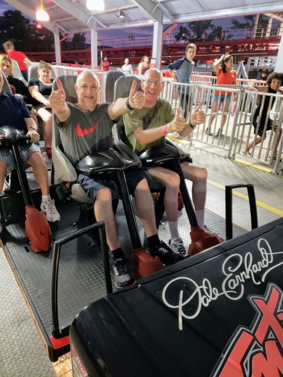3. Day 3 - Testing SuperPowers With one RMC in the books it was time to head out to our next stop - Carowinds. This isn't just the RMC tour. It's the RMC and more tour. What's a part of more? 3 giga coasters! All vastly different from each other and needless to say we were excited to greet the first of the trip. This was a good down day coming off of a 14 hour SFOG day. The bus is fantastic and makes even a 5 hour drive go by quick - plenty to see out the clean windows, endless AC, and outlets to keep everyone happy. No poopin' in here!!! Lots of time on the bus was important today because it was time to collect your thoughts and make a guess for Jared's Merch Madness. For those of you who don't know, Jared loves to collect t shirts from all the parks he visits. Lots of them. But much less than my initial guess I'm a dumbass. We had an hour lunch stop and given our location outside of Spartanburg, I knew there was bound to be some good BBQ in walking distance. I like to think one of my super powers is finding a hidden gem to eat/drink. Chicago has really sharpened my restaurant-detective skills and within a few minutes I had found something promising. Carolina BBQ! http://www.mycarolinabbq.com/ Yep the famous German TV one! With the hour time limit, I knew BBQ would be perfect. It's already smoked. You just go get it. Once I got close I knew it was legit because the aroma of delicious smoke was somehow overpowering the exhaust of 100+ cars at the crowded intersection, haha. This place is cute and homey, right down to the stereotypical motherly waitress with the big southern accent that says "Thank-yew vurry much sweet pea" way too many times. The BBQ was some of the best I've ever had and it came with slaw, orka, hush puppies, and a tea. Of course it was all for under $10. There were plenty of sauces to try, too - including Cheerwine sauce. Yeah I'll be stopping here anytime I possibly can. I paid and was able to make it back to the bus with 20 minutes to spare. We only had an hour or so to Carowinds and the skies started to darken up, all to familiar to my quick stop in May where the radar looked like a piece of abstract art. Well, looks like this was going to be the case. BUT we aren't just your normal group of coaster enthusiasts, we have someone special. We have Andy: Super powers: expert weather predictor, mother nature whisperer, Ghostbuster of storms. First off, when we arrived we some how dodged rain. While we waited for Fast Lane and wristbands, we still didn't get rained on. That would have been brutal trying to get into the park in the middle of a storm. We knew storms were in the area so we all found indoor rides/shopping/the bar. The bartender at Carowinds in Harmony Hall was great, and kept many of us entertained while the rides were down. They had a great selection of mixed drinks and beers. It was about 6:30 or so that rides started to open up, so we hit up some favorites while we could. Get your credits in, Carowinds noobies! Afterburn - I'm a huge fan of this invert and for a good 30 minutes there was no one in line, it was like mini ERT. The zero G is my favorite element with that crazy wing over between the trees being a close second. This part Storms moved back in for a bit, which was totally fine since it gave everyone time to get another drink and some food. When I pick food at a theme park I try to go for the food that's hard to mess up - fried food, something simply grilled like a burger, or BBQ. People rrrrrrrraaaaaave about Harmony Hall and I was excited to double up on BBQ today and get pulled pork for dinner. Welp, it must have been an off day because the pulled pork was really weak. It was edible, but nothing close to what they have set their expectations to be. Oh well! The beer is great and that makes up for it. It was getting dark and the storms were clearing up once again (thanks Andy!!!) so it looked like we could all get in 90 minutes of riding before Fury ERT. I was talked into riding Hurler and woah, who fixed this ride up?! It was not bad at all. Not quite Racer 75 smooth, but totally fine. I also fell for the new shiny boomerang trains. Curiosity got the best of me, wanting to try out the new Vekoma set up but it was still a crappy boomerang I nearly forgot about that with all of the Fury and Afterburn love. Hey Brad and Franklin! TPR giving Intimidator some love! Fury for an hour was so much fun. It's one of the easiest coasters to ride over and over again. This made it a favorite for a lot of people on the tour! I really like Fury because I can hang over the side, lean left and right, pretty much just take advantage of the freedom those B&M clamshells give you. Combine that with an hour of riding I'm pretty sure I got every angle I could on the hills, turns, and that special diving wave turn/treble clef. Bzzzzzzzzz Fury 3 2 5 E R T Fury looks amazing at night. MERCH MADNESS HAS BEGUN!!! (Robb photo credit!) Big shout out to the crew. Thanks for all the rides! Bye Fury, see you next year! After an hour of Fury, some of us weren't ready for bed yet so we took over the late night window at Cook Out once we got to the hotel. What is Cook Out? It's a quick service restaurant that serves up shakes, fries, burgers, chicken, all of your favorite foods. For cheap!!! https://cookout.com/menu/ You can get a combo with 2 sides for like, $5. Or floats. Or just a gallon of Cheerwine. TPR loves Cook Out and this won't be the last you see of it! Yes, these prices are real. This is a real place. I don't know how it's so cheap and so good just go find the closest Cook Out! That'll cap day 3.
