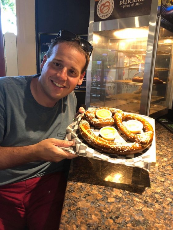 4. Thanks everyone! More coming soon. Hahaha, too funny. You just need to visit a couple parks to get inspired! You'll find something. Have fun riding out this current wave. Thanks! Yep, our group had just gotten in line. We figured if we only have to wait for 1 thing the whole day it might as well be food. But we didn't anticipate the food to be...that..bad. Woof. Yep! There was one lonely pretzel rotating for what seemed like hours, and while we wanted the pretzel, we were not going to pick that one So they made a fresh one. Hooray one positive SFOG food note! With thanks to EB (vuurvogel) for starting the idea for me in 2016! When you can fall back on Stroolwafels for dinner when Wendy's is closed, that's a beautiful thing.