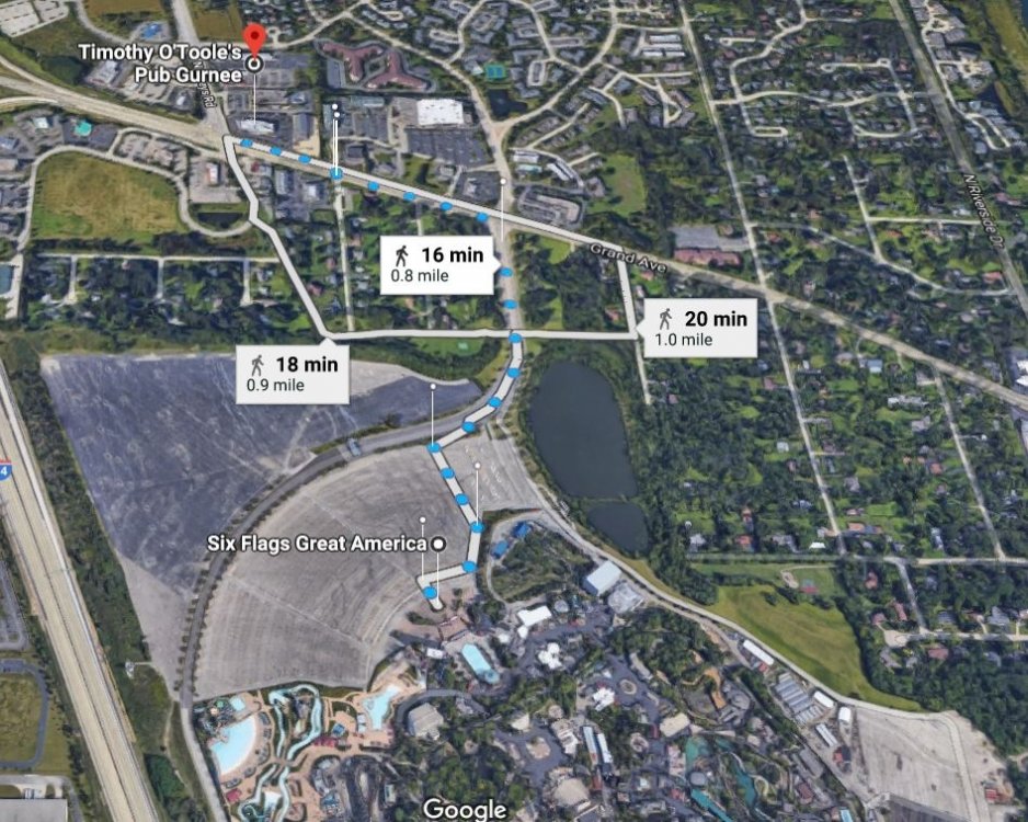 Timmy O'Toole's is right across the street from the park. http://www.timothyotooles.com/gurnee Excellent beer selection with lots of rare stuff on tap frequently and I've never been disappointed by the food. https://s3-us-west-2.amazonaws.com/otooles-media/33883/MAIN-MENU-4112018-F-OUTLINED-G.pdf It's so close you could walk.