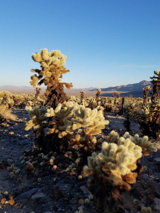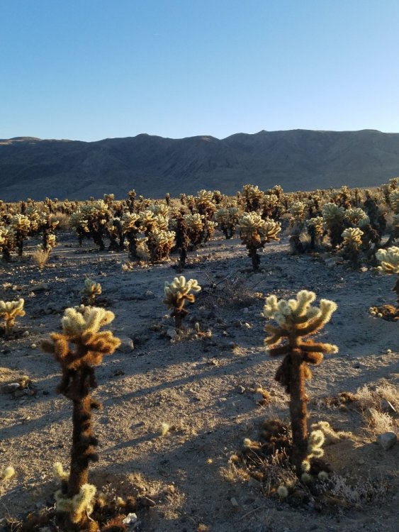 Thanks everyone! There will still be another roller coaster in the trip report, but here's the Joshua Tree update. Continuing with things working out perfectly - Knott's is right off the highway on the way to Joshua Tree! Perfect. I had my 3 friends pick me up and we stopped at Porto's Bakery, around the corner from Knott's. http://www.portosbakery.com/content/portos-bakery-cafe-buena-park Porto's is an unbelievable Cuban/international bakery shop which features stunning cakes, meat pies, potato balls, empanadas, and so much more! It's very busy, but the place is so well organized you won't spend too long in line. I got 5 things and only spent $7. Stocked up on good food, we made the 2 hour drive East to Joshua Tree National Park. We got a great airbnb 2 bedroom with a hot tub just outside the park for only 100 a night. (https://www.airbnb.com/rooms/9443663?location=Joshua%20Tree%2C%20CA%2C%20United%20States&adults=4&children=0&infants=0&guests=4&check_in=2018-02-17&check_out=2018-02-19&s=RP42KXqe - Airbnb) Joshua Tree NP is absolutely massive - it takes about 3 hours to drive through. It seems like the amount of trails and climbing spots are limitless. If you like camping, hiking, bouldering, rock climbing, you've got to visit this place. Outside of the park there's plenty of good eats and places to grab a beer at, so you're not in a remote wild west town. BUT if that's what you want, just a couple miles over is Pioneertown, CA which looks like it's stuck in the old western times. It was hilarious that no one we talked to in LA had been to Joshua Tree, but had heard of it and thought it's just 'desert' or 'a place to trip balls' or 'the park near Coachella'. I love music festivals and live music, but I think it would be criminal to go all the way out to Coachella/Palm Springs and not see the other-worldy wonder that is Joshua Tree. Next up ....LA + Santa Monica! This is just one tiny section of Porto's Sweet or Savory - they have it all! Part of my haul Let's climb up a little for a better view Fast forward to our first hike + sunset It was like seeing these colors for the first time Peace and quiet takes a whole new meaning out here. Who knows how old this guy is It's not even 6pm but it's getting very dark very fast! This is a Joshua Tree. If you don't know, now you know. This looks very sharp. I wish this picture could show more depth - the scene just went on forever. There were even white capped mountains. Just us and mother nature. Tons of rocks to climb around on. Friendship is rare The Cholla cactus garden...just incredible Notice all the little ones on the ground? Yeah it was like walking through a mine field They just went on for MILES! So surreal! Unlimited places to hike and climb.. I'd be out there for a month if I could Album cover #8 Cactus....sharp!!!! One last shot from the Cholla cactus world.