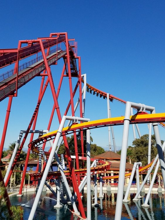 Hellloooooo TPR! My goal for 2018 is to visit a different park each month since I haven't been doing a good job at breaking away from the Cedar Point-Kings Island-Great America mold. January was a success and I've just gotten back from California. I'm happy to report this trip went over much better than anticipated! Precursor: this trip out to California was originally just going to be to visit Joshua Tree National Park. As the holidays came around I got a Platinum Pass so I started researching Knott's. Easy. On the way to Joshua Tree. Perfect. Fly in Friday 2/16 for Knott's and spend Sat-Mon in Joshua Tree. So I got a night at the KBF hotel + the Karmel shuttle once I land to take me to the airport. Getting closer to February... Wait. Disneyland is only a 10 minute drive away. Holy crap. It's also open 'till midnight! Knott's is only open until 8pm! Xcelerator is closed... Maybe I can squeeze in both. It's been 10 years since I've been to Disneyland but I've seen everything, so I won't be missing out on anything rushing through. So the plan: Land at 8:30am 9am shuttle to Knott's Knott's open until 3-4? DCA for Cars/Guardians Disneyland for Space Mountain, Indiana Jones, Matterhorn Sounds do-able? Okay, sweet. But if my flight is delayed that screws everything up. So I wouldn't buy a DL/DCA ticket until I was seated on the plane. Fast forward to last Thursday. Weather looked good. Flight on time! *Up at 3:30am Chicago time. Go go go. Seated on the plane. Ticket + MaxPass bought. *Winds caused us to land at 9, so I was already 30 minutes behind schedule. *Shuttle was effortless and I was the first dropped off. Amazing. Dropped my bag off at KBF hotel and headed into the park. No issue with the Plat Pass getting in! Welp, Ghostrider was going to be 90 minutes all day. I waited about 70 minutes? Got a back seat ride. Ghostrider 1x - It reminded me a lot of Legend (HW) in terms of laterals taking the spotlight over airtime. Absolutely silky smooth ride, but it didn't deliver the airtime I thought was going to be there. I would have loved to have ridden it more than once but it just wasn't in the cards for today. 7/10 I was a bit worried about growing lines for the rest of the attractions since it was already 11am, so I sought out Pony Express. Pony Express 1x - This just wasn't what I was expecting. I definitely know a bit about each coaster of the park I'm going to visit, but I don't know the specs. Wow this ride was short, but hey it was running and I was able to get on it. It was tucked away in a corner of the park and it took me way too long to find it 5/10 Voyage to the Iron Reef 1x - Right next door and why not. Honestly, I liked this a lot! Even better than the Justice League rides. Why? It was taken at a comfortable pace and the 3D worked better IMO. The set designs were okay, but you're not just rushing through like I feel the JL rides do. Voyage's screens weren't blurry, the plot was simple, and everything worked. The dots were easy to see so aiming wasn't an issue. 8/10 Goddamn Coast Rider 1x - I love Mack rides. I love wild mouse coasters. WHAT'S WITH THE SHIN BARS?! I'm not even tall! The lap bar wouldn't touch my lap because the shin bar was preventing the restraint from coming down properly... I don't get it. It was a painful ride all the way through, but not as bad as Zeus so you're not the lowest coaster on my coasterpoll.com list! 0/10 Holding back tears as I went by Xcelerator, I went to Supreme Scream because drop towers are fantastic. The website led me to believe this S&S tower was a Combo Tower. Not the case, unless the 1 tower that wasn't open was. Regardless, it's a fun downshot S&S tower with views of downtown LA. I rode Supreme Scream 2x during the day. By now it was getting close to noon and my body has no idea what's happening because I've been up since 3:30am running around. It's time for some Boardwalk BBQ! Shoutout to the user in the KBF thread that posts pictures of their food often. Only gripe here - I told the woman behind the counter that I wanted to keep a light stomach so I could try all of the amazing food offered at KBF and even though the pulled pork was only offered in 1/2lb portion, she said she could give me 1/4lb (other meats like tri-tip come in 1/4lb option). Well that information wasn't relayed to the cashier and they emphatically told me I was given 1/2lb portion and wouldn't budge. There were no scales around so fine, I don't know who's in the wrong but I'm not going to spend any more time arguing when my clock is ticking. Boysenberry beer was great! BBQ was solid with a good amount of sauce variety to pair with. Tip - Boysenberry beer is Shocktop + Boysenberry concentrate mixed. Even if you're not a fruit beer guy (I prefer IPA's/pale ales), it's a good refreshing beer on an 80* day. Okay great, food is in my system and my body is happy. What's that? I can take my beer wherever? Excellent, let's get on the flume! Timber Mtn Log Ride 2x - I knew Splash Mountain was going to be closed so I relished my two rides here even more. I love flumes and this was a great flume, right up there with Movie World Australia's, Splash Mtn, Log Chute @ MOA, and others. The mix of animatronics, smells, surprise drops, and acceptable amount of wetness had me laughing and wide-eyed the whole way around. 10/10 Calico Mine Ride 1x - A visual timeless thrill. There was so much going on it was a crime that I was only able to ride it once. Lock me up. 10/10 Silver Bullet 3x - Of all of the coasters open today, this was one that I was looking forward to more with Xcelerator closed. Ghostrider was a let down for me, so that lowered me expectations even further since I've always known this ride to be the start of the decline of forceful B&M coasters. Soooo.. What's up guys? Silver Bullet was GREAT! Sure the lift hill feels steeper than the drop itself, but this invert flowed so well through each inversion, pulled some G's, and had unique elements like the overbanked kick