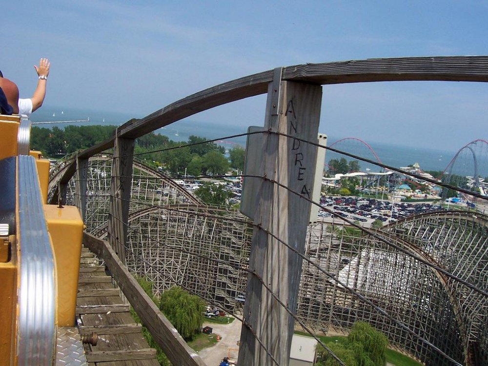 For fun, have you ever noticed the name "Andrea" at the top of the Mean Streak's lift hill? This has been here since 1994. Andrea is one of my close college friends from Sandusky. Her dad works on the Mean Streak and put this here for her 9th birthday.