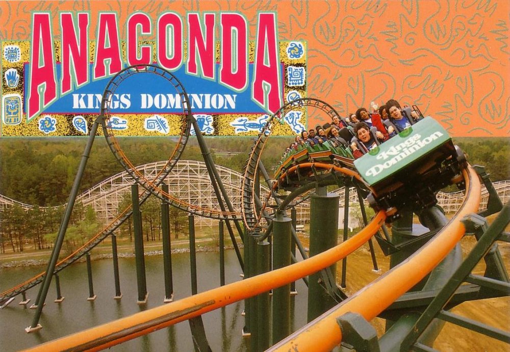 Just caught up on looking at all of these. Fantastic collection Mark!! I have a few of those. I have a few I have scanned I will post now but I will try to dig out more of my oldies. I always love collecting postcards from the parks I visit....sadly they are harder and harder to find now. Great thread though. JEFF Cool pic of Thunder run before the Heavy reprofile Will never see them interlocking again..... so sad moment of silence I promised myself I wouldn't cry Anaconda postcard from 1992 (notice no waterpark) -