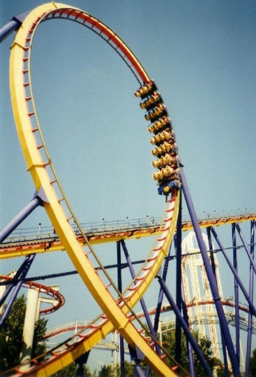 Yes, Riding it while it happened was very cool...right up there with the loops on Dueling Dragons...But sadly it will never do it again. I had a big rant about it in Jarmor's Gwazi POV post, here is the excert The Loch Ness Monster at BGW would be awesome when the trains were dispatched at the right time and they would interlock through the loops together. One Day We were waiting in the station for a while and I asked the checker why are we waiting? He said that maintenance does not want them interlocking the trains through the loops anymore. What a bunch of Crap! The Loop Structure is Completely independent of one another!!! Sure enough. Next year the lift hill was slowed dramatically to make it Impossible to happen!!! and it remains that way to this day. JEFF -