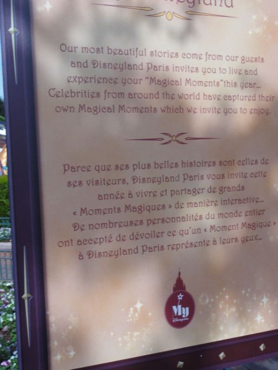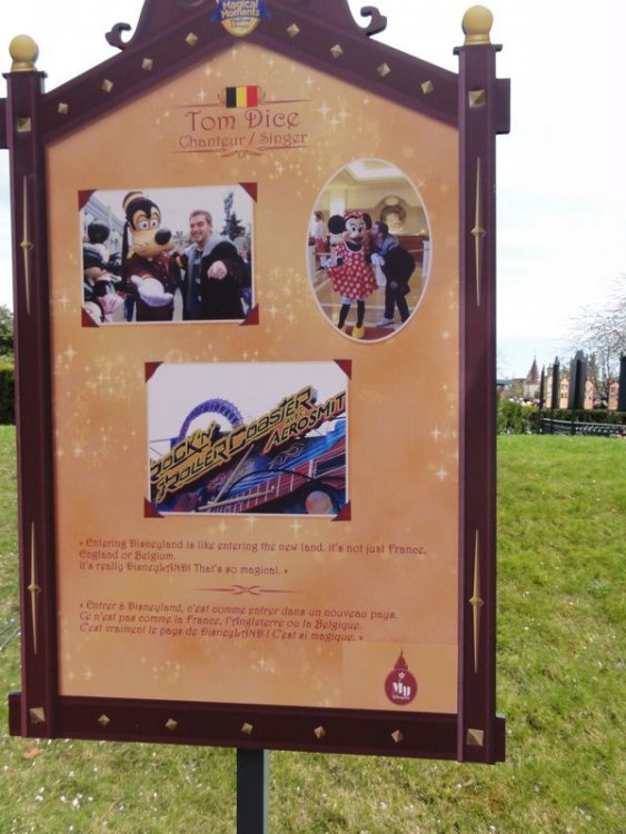 This weekend 2 and 3 april I was at the Press Event for the launch of the new season at Disneyland Paris called Magical Moments Festival, enjoy the pictures and video from the event First the Dedication Ceremony Video http://www.youtube.com/watch?v=KWq_64ihce4 More video coming soon now some pictures The new sign at the entrance of Main Street TV crew making video with the characters Foto location The stage ready for the press event dedication ceremony Disney Dance Express African tamtam players It's me AT the dinner table with Alice Where to get out ? Cake, Mmmmmmmm tasty Make an interview Belgium Singer Talking with some Imagineers Me and Philippe Gas, the CEO of Disneyland Paris Corporate Fan Dinner with Philippe Gas Dedication Ceremony for vips and press only Empty Main Street