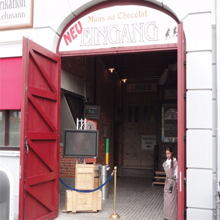 Everyone knows Toy Story Midway Mania, Phantasialand made it's own version called Mause au Chocolat where you ride through a Factory that makes delicious cake's, this ride is unique for Europe themeparks because no other park in Europe has a ride like this, at the end of the ride you arrive at an actual place where you can eat the cake's http://www.youtube.com/watch?v=AsCDBN29grc Entrance sign Entrance The que line