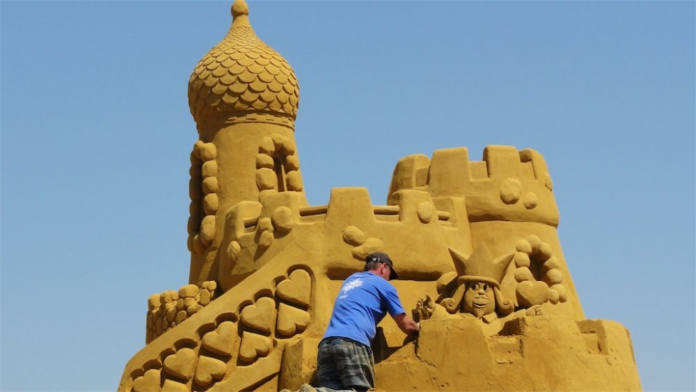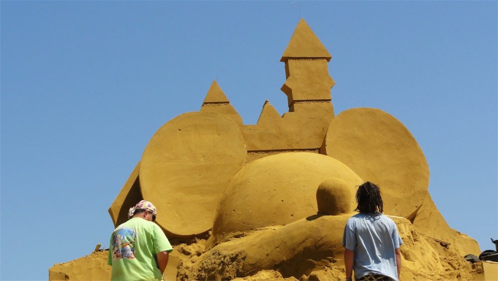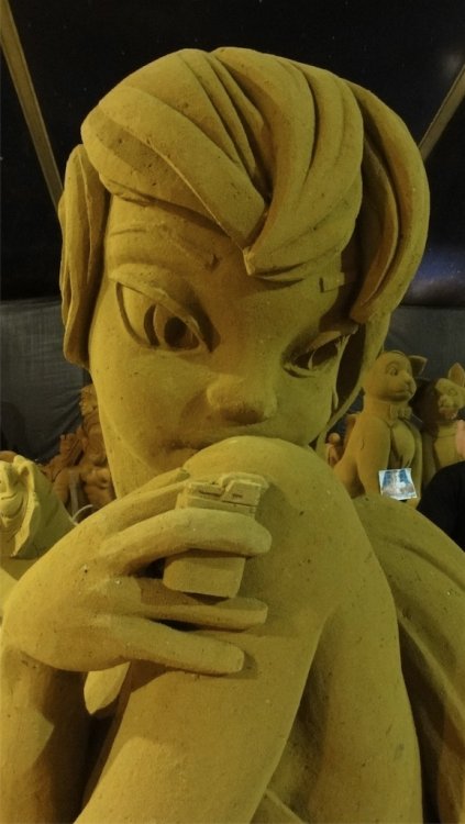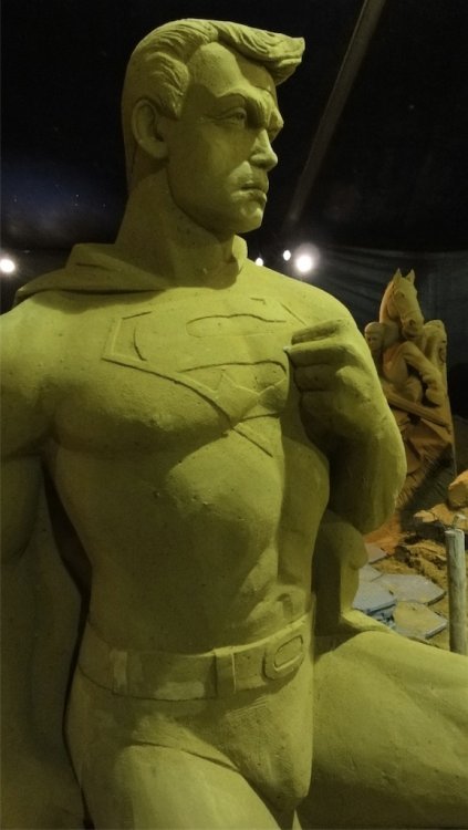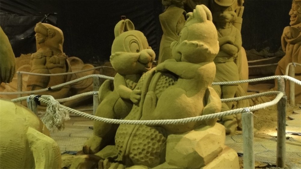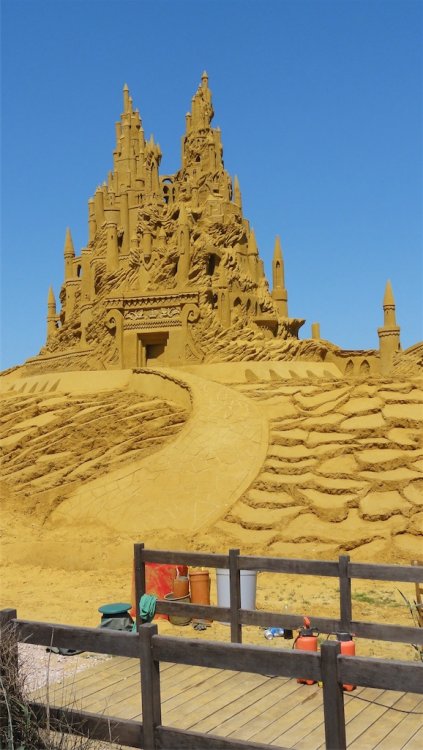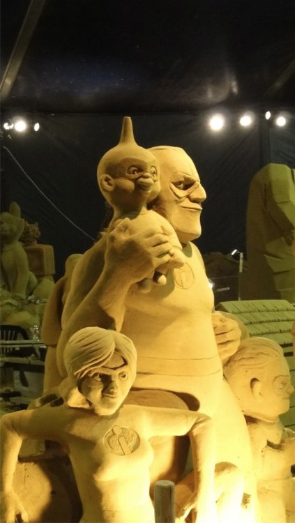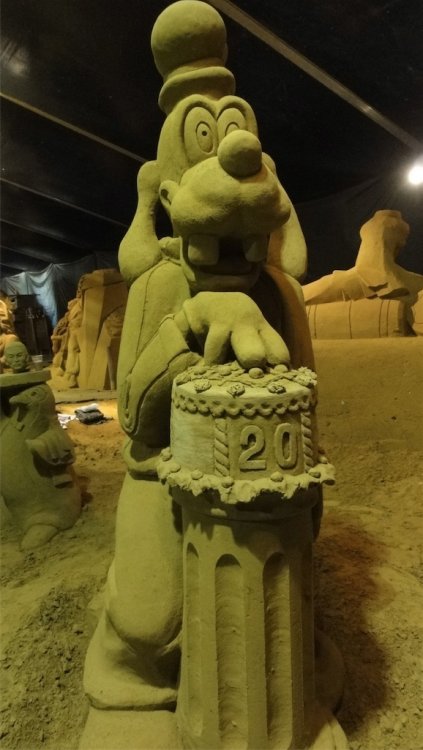 Starting at 1 June 2012 until 2 September 2012 you can visit a sand sculpture festival in Blankenberge Belgium featuring theme parks and comic book characters in sand The sand sculpture festival is featured in the Guinness book of records for biggest in the world I had the chance to make 2 exclusive video's about the making of http://www.youtube.com/watch?v=5u3-Pc9JsM4 http://www.youtube.com/watch?v=M2YLZG5Ferg Pictures and poster of the festival: http://filipv.minus.com/filipv/uploads A very Big Sand Castle Alice in wonderland Mickey mouse ears in sand Goofy with a 20 years Disneyland Paris Cake from sand, mmmmm, tasty and crunchy Mickey Chip and Dale Superman Th incredibles Tinkerbell Obelix