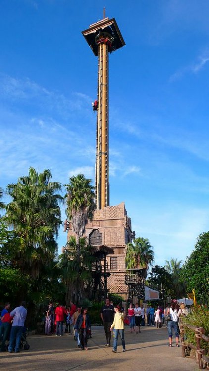 I have just come back from Port Aventura after a very enjoyable 2 week stay and decided to post some of my pics here as a taster for all of you who are going to the park on the TPR trip next year. This is my first ever Photo TR on TPR so I hope its alright! And to finish, me and Vampire Woody! As I said above, this is my first ever post on here so I hope it is ok. Any ideas?! That would be my kind of theme park! Yep, Intamin track for the 2007 coaster. Mmmmmm, looks like Intamin track to me. A view of Dragon Khan from the top of Condor. What is that I see just to the right of the dive loop? The themeing of the station is excellent. The Mexico area of the park includes the huge Intamin drop tower, Hurakan Condor. Stampida...through the trees! This ride is getting new KumbaK trains for next year. Stampida, the parks racing CCI woodies. Welcome to Far West and the Grand Canyon Rapids. The Khan bunnies love corkscrews! A panoramic view showing all 8 inversions, the most on any B&M. Moving onto China with the monster that is Dragon Khan! ...yes, that is gum! It is stuck everywhere onto the roof of the cave. Disgusting! It is also very well themed. Going into one of the caves through the rides course. However, this cave contains a dirty secret... Tutuki Splash, a Shoot-The-Chutes ride. Kon-Tiki Wave, well themed Pirate Ship style ride. Aloha to Polynesia! The entrance land of the park: Mediterrania. The Halloween themed park entrance.
