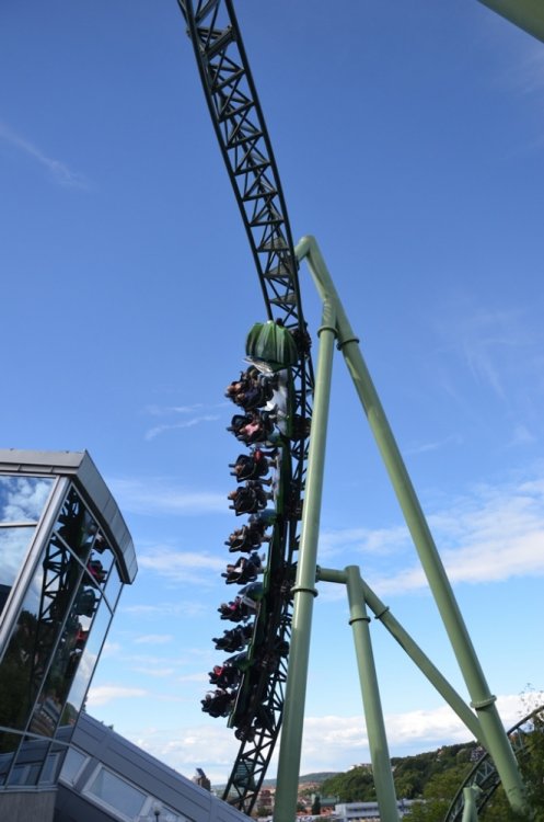 The second day of my visit we spent the day at Liseberg. Home to Balder, Kanonen en Helix. It was fun seeing and hearing everybody's reaction to Helix after having been able to ride it myself earlier this year (for opening) And Balder.. own my.. still such an awesome ride. I do like this park and look forward to a future visit. it's a beautiful morning true hammer time let's ride going down the first drop surprise surprise (I guess) airtime hands up if you have a great time so many things I could say... time to check out the rest of the park sweet more green (trees etc) around the ride provides some new angles big inversion lots and lots of steel but there's more Kanonen and then there's Balder next door.. hmmm Kanonen... Balder... yeah, hard to beat (for me) such awesome hairtime time for a few more Helix images final inversion flexible train and wheels moving in the correct direction more hairtime what's up kiddo? Balder train going up the lifthill is it shock? is it joy?? it's Helix more happy riders ehmm?? Just in case you were wondering what park we are at second launch first drop out of the station surprise more awesome hair air, hair, wheel time lovely front of the train viewing window of the drop thingy part of the queue area for Helix the music would get stuck in your mind.. so many angles and directions to look at first inversion fun fear and joy extreme hair I did not mind spending some time and relax in this area bit more Kanonen?? sure classic park ride = logflume at the top of the big drop so many possible captions.. Kanonen station area control area launch time to relax a bit more and then this happened pretty darn good job with the make up (and blood) looks like it's haunted owh crap thanks for having us it's such an awesome park dance area Finishing of the day on Balder