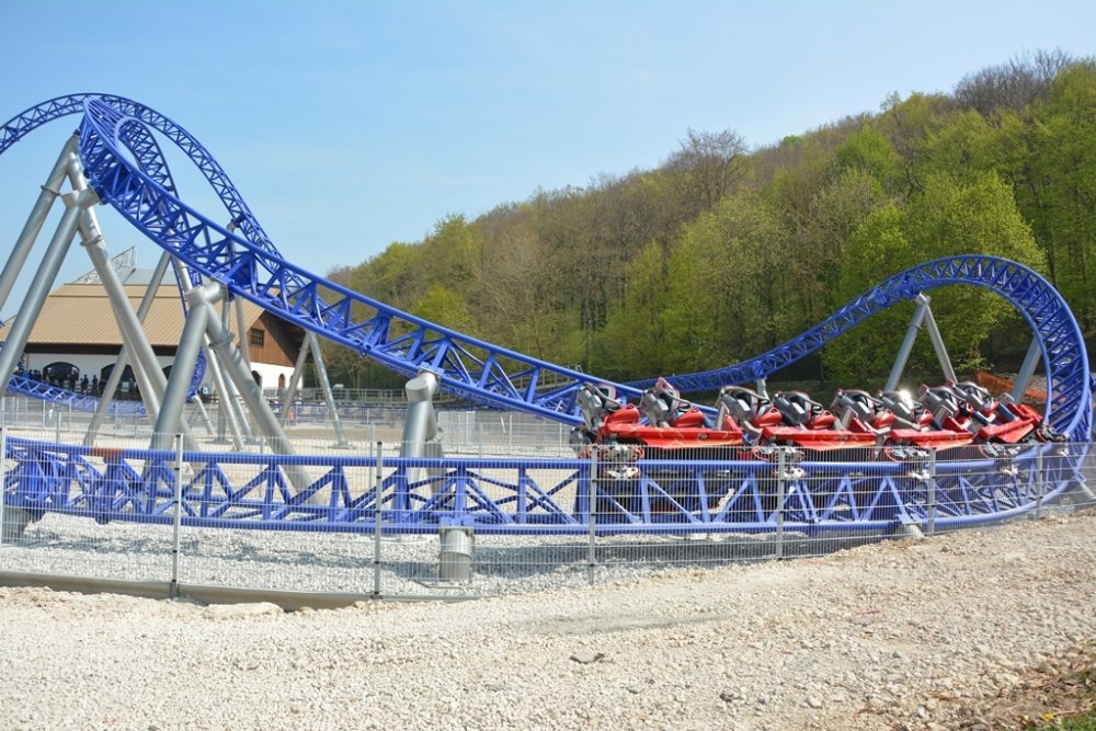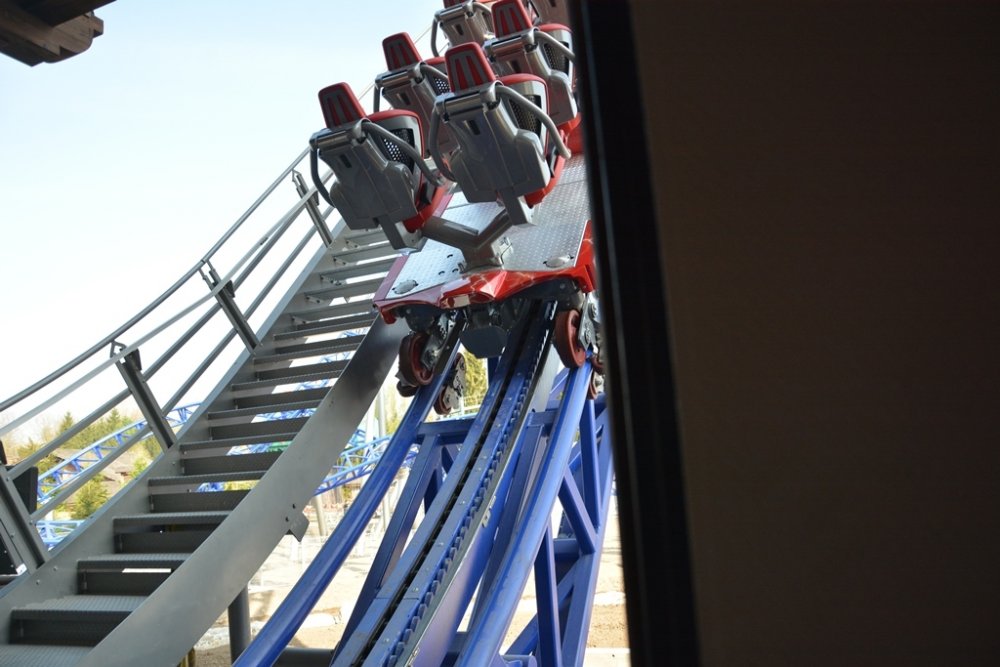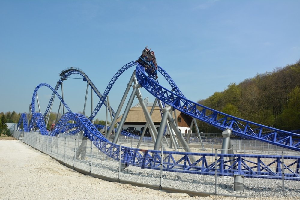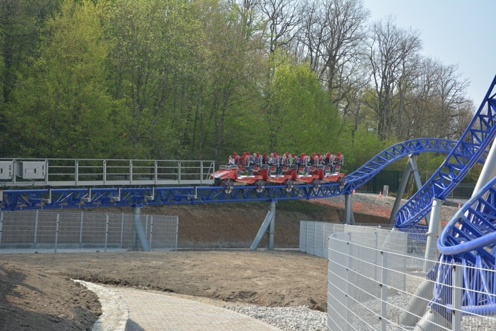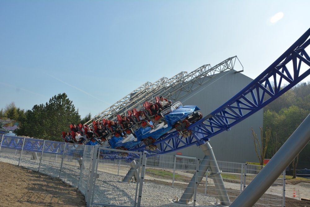 So today I had the pleasure to visit Nigloland and check out their new coaster Alpina Blitz. The ride itself is built by Mack, 713meters long and 33 meters high. Speeds of up to 100km/h are reached and 9 airtime moments are included. Had a blast riding this and i only spotted happy faces of people after riding. I like how it's a step up compared to the other coasters at the park. Looking forward to what else the future has in store for this park. For the folks that have been on a megalite.. This looks and feels very similar Video: Picture time: early morning, time to wake up but first.. it's presentation time bacj outside, big wheel but this is what i came for moving the train back of the train this ain't a bad sight to wake up to maintenance area going up the front of the train ride is open, just look at the line going up here they come are these extra wheels in the chassis for the maintenance area?? looking at others while standing in line blue train whee for all the tech geeks.. here's the underside of the trains expressions time hairtime (and something else is flying away as well) more hair and airtime yup, hairtime final turn before the brake run fear? joy? happy rider mommy too funny more expressions how about scarf time instead of airtime? happy happy joy joy from 1.30m and up? does this need a caption? station building looking at the back of the first drop top of the lifthill brake run fear, joy terror fun extreme hair happy faces fun for all ages yummie logo first drop fun another first drop image so many things to look at (say) yup.. it's pretty thank you going down underneath the lifthill whee watch out for that tree.. airtime humps happy happy caption this more happy faces more hair turn time lots and lots of track time to "fly" fun fun fun heading for that final bit that's it