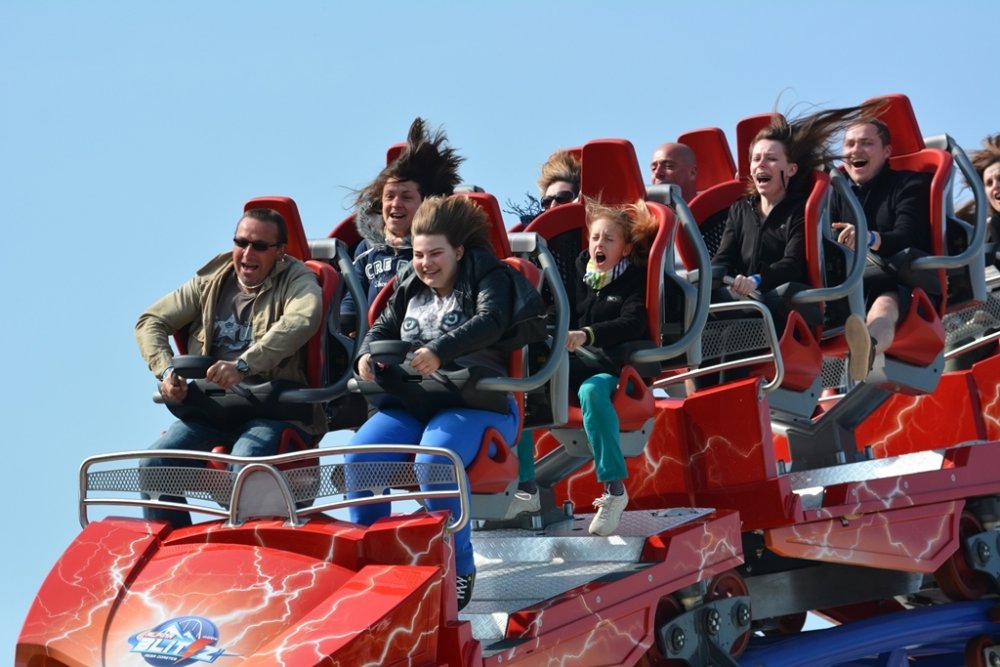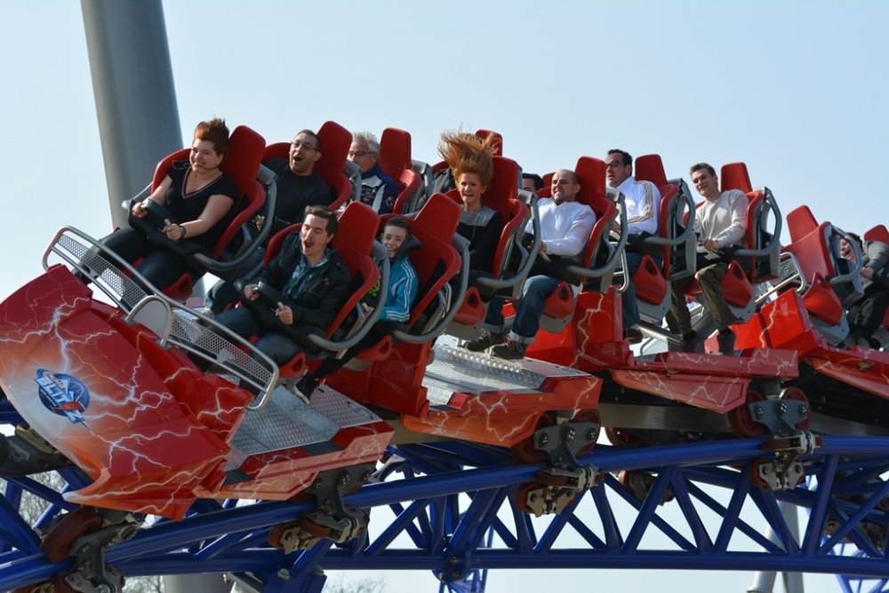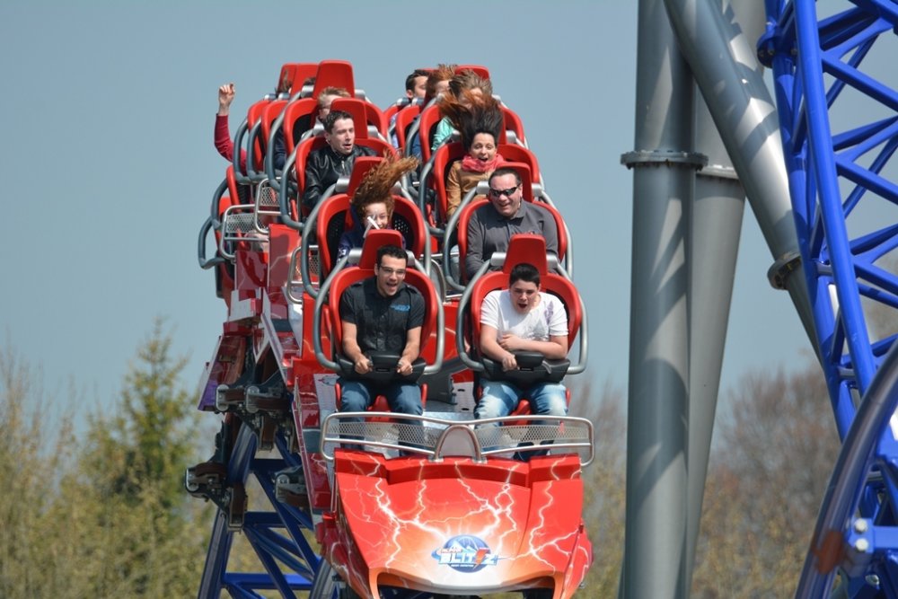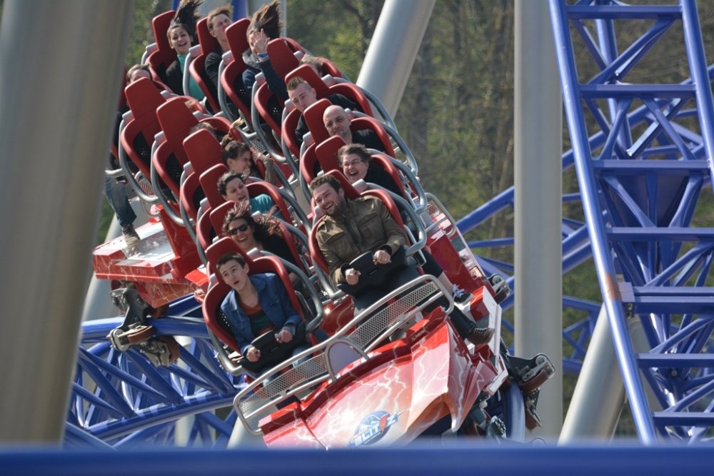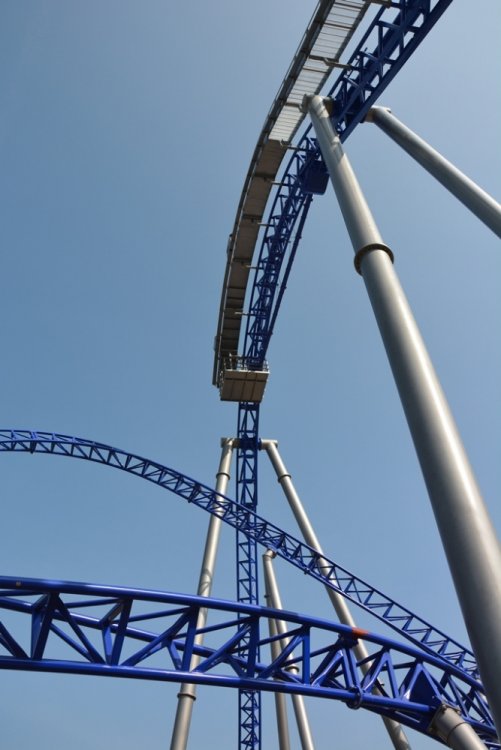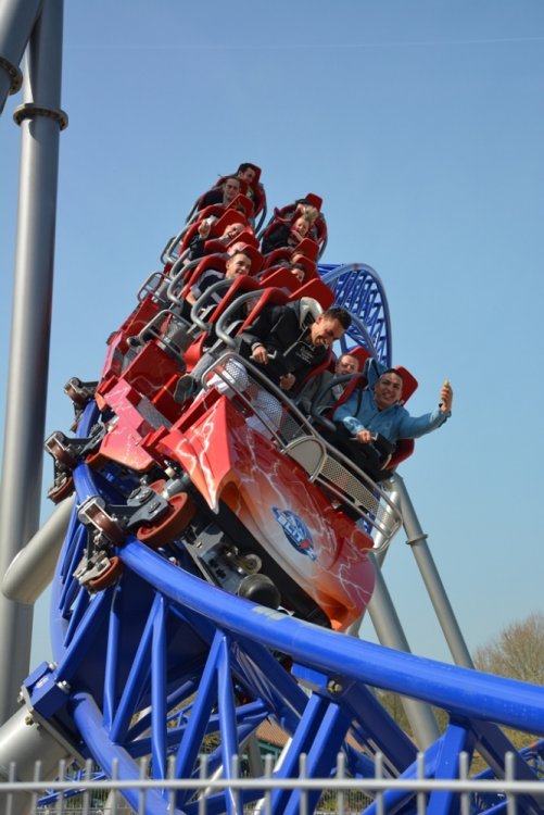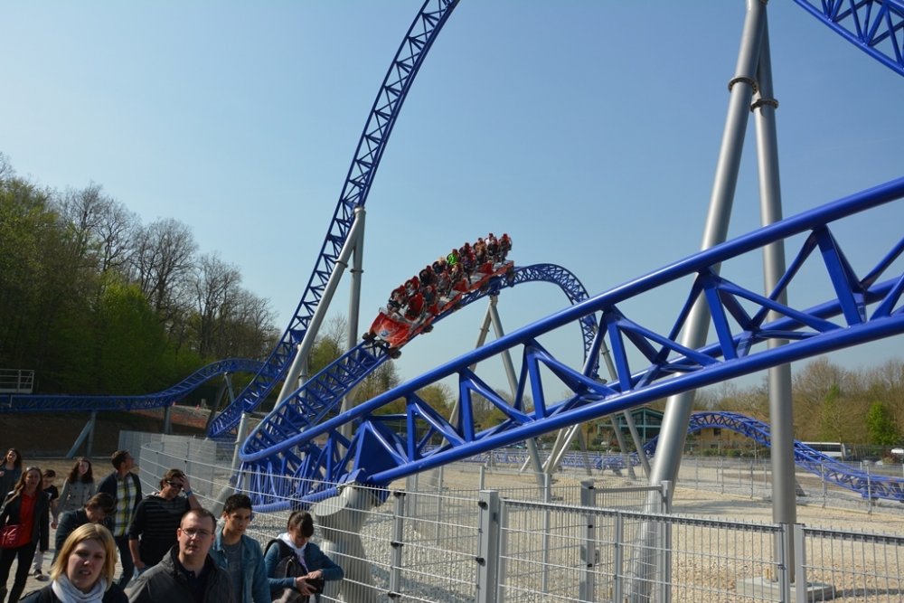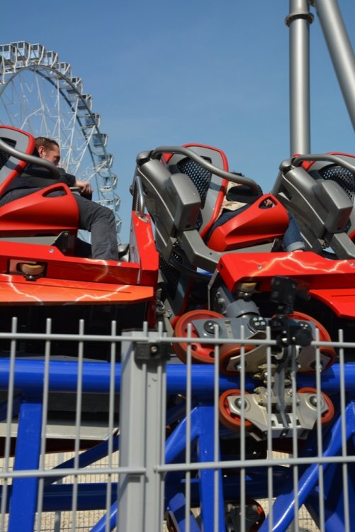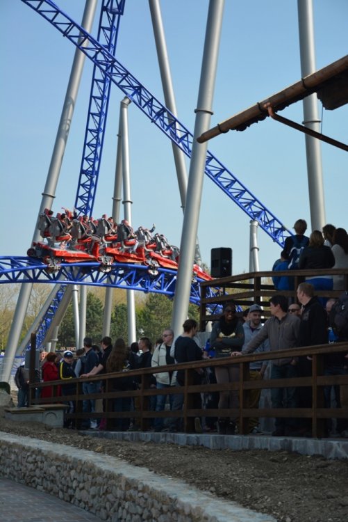 So this weekend I had the opportunity to visit Holiday park and see what was new for 2014. Sky Scream is the new big ride for this year, but the park has also added some small things which are pretty awesome. This Premier Rides Launched coaster goes 55meters high, has a top speed of 100km/hour and includes 3 launches (forward and backwards) For those that have been to Six Flags Discovery Kingdom it might look and feel very very similar to Superman: Ultimate Flight . The park also updated their waterski stunt show which is now named: Hollywood's Talking Dead. The darkride Burg Falkensteing has live scare actors in it everyday from 13 hours One more awesome thing, they have added a fastlane system at the park for their major attractions. This includes unlimited rides on: Sky Scream, Expedition GeForce, Wickie Splash (the re-themed devils water ride), Donnerfluss and the Free Fall Tower. Sky Scream appeared to be a hit with everybody, fun ride and a great addition to the park. I really like how this is a plopsa park that caters for all ages and not just small kids and their parents. And then there is Expedition GeForce. Still an awesome coaster that is a lot of fun. During this visit I focused on Sky Scream and GeForce so here are some of the pictures I took: Here is the Sky Scream POV: so this was the first thing I noticed awesome sight and then there is this but first things first sky scream lots of twisty steal looks fun and riders flex train connection going down wheee gravity can do funny things hair cables, cables and more cables underneath almost upside down going back up going towards the top theming around the ride will be finished during the summer.. should be even more fun then sky scream fun for a lot of ages going down more hair at the top.. about to go down and the lower bit lovely looking track and the top and then there is this fear and joy.. so close and yes.. it still does this to riders drop fun top of the lifthill different riding positions whee big turn airtime hairtime such a beauty fun fun fun scream if you are having.. ehm