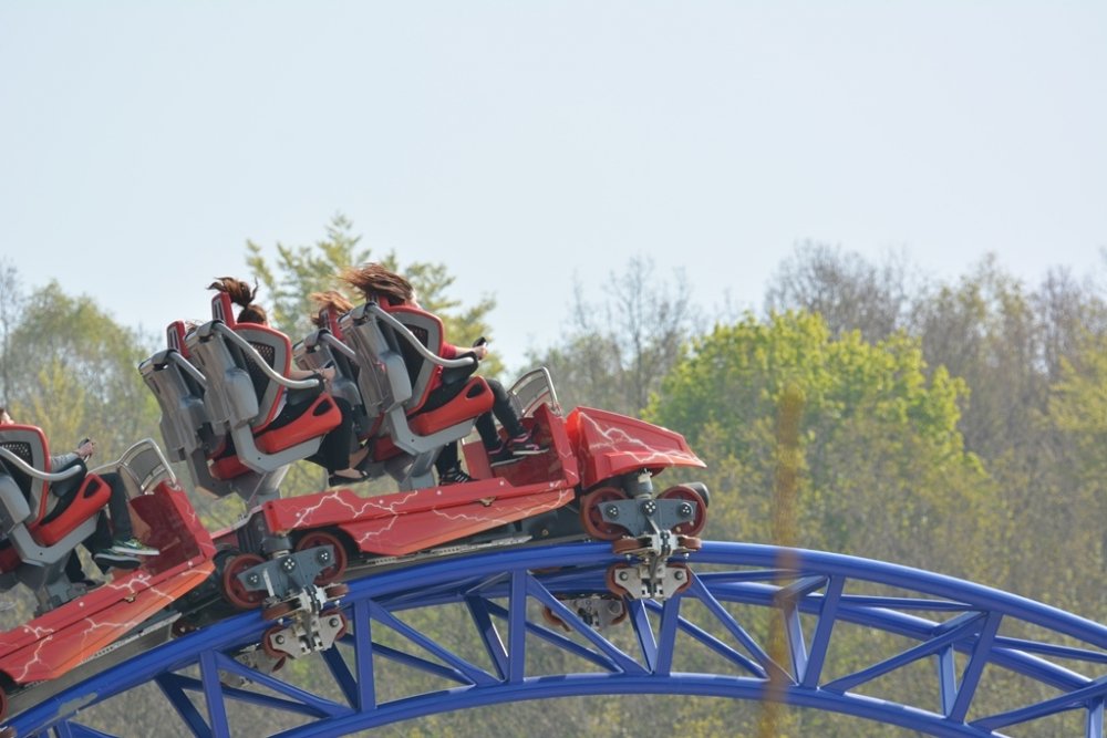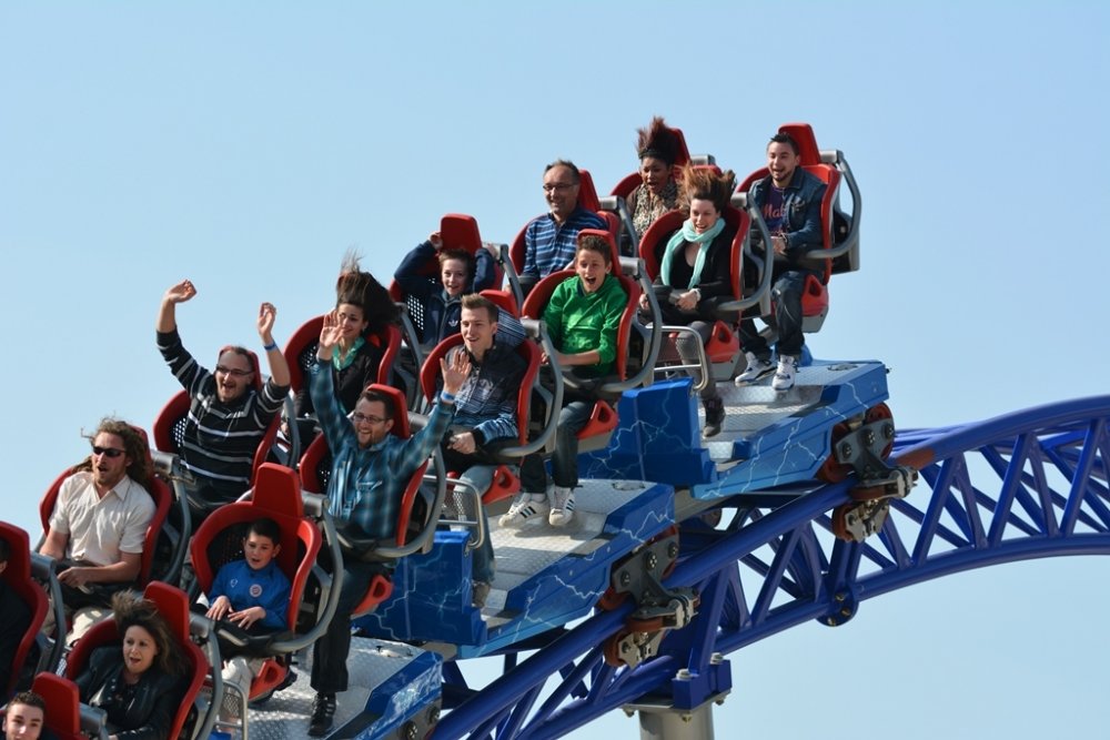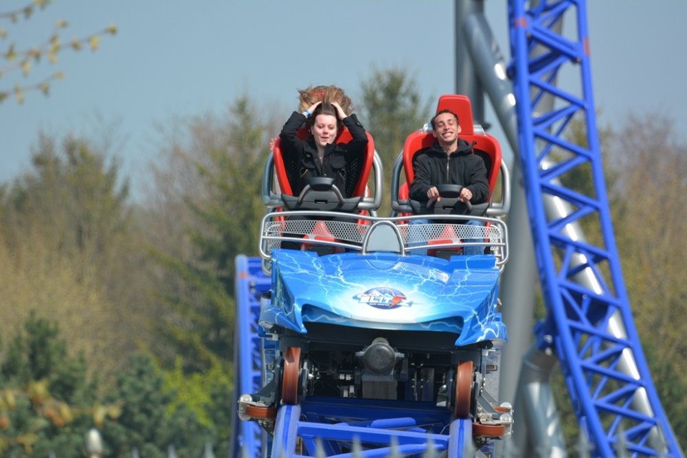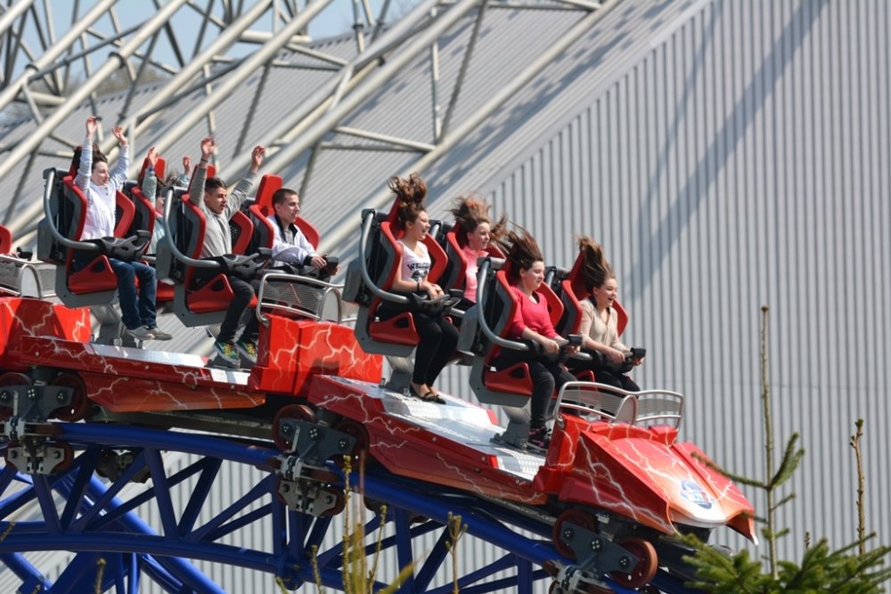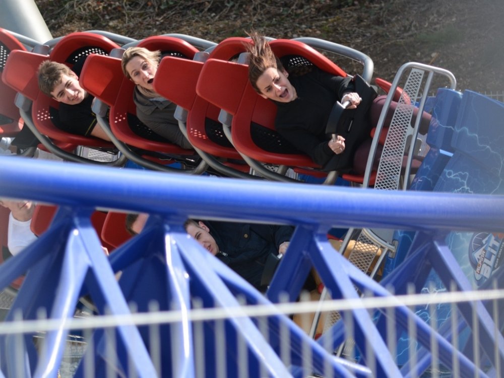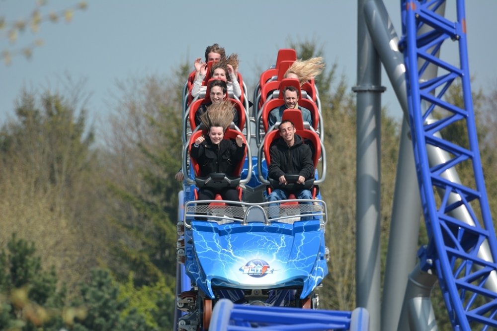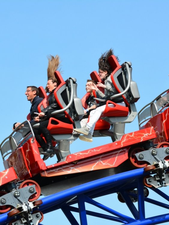 So this weekend I had the opportunity to visit Holiday park and see what was new for 2014. Sky Scream is the new big ride for this year, but the park has also added some small things which are pretty awesome. This Premier Rides Launched coaster goes 55meters high, has a top speed of 100km/hour and includes 3 launches (forward and backwards) For those that have been to Six Flags Discovery Kingdom it might look and feel very very similar to Superman: Ultimate Flight . The park also updated their waterski stunt show which is now named: Hollywood's Talking Dead. The darkride Burg Falkensteing has live scare actors in it everyday from 13 hours One more awesome thing, they have added a fastlane system at the park for their major attractions. This includes unlimited rides on: Sky Scream, Expedition GeForce, Wickie Splash (the re-themed devils water ride), Donnerfluss and the Free Fall Tower. Sky Scream appeared to be a hit with everybody, fun ride and a great addition to the park. I really like how this is a plopsa park that caters for all ages and not just small kids and their parents. And then there is Expedition GeForce. Still an awesome coaster that is a lot of fun. During this visit I focused on Sky Scream and GeForce so here are some of the pictures I took: Here is the Sky Scream POV: so this was the first thing I noticed awesome sight and then there is this but first things first sky scream lots of twisty steal looks fun and riders flex train connection going down wheee gravity can do funny things hair cables, cables and more cables underneath almost upside down going back up going towards the top theming around the ride will be finished during the summer.. should be even more fun then sky scream fun for a lot of ages going down more hair at the top.. about to go down and the lower bit lovely looking track and the top and then there is this fear and joy.. so close and yes.. it still does this to riders drop fun top of the lifthill different riding positions whee big turn airtime hairtime such a beauty fun fun fun scream if you are having.. ehm