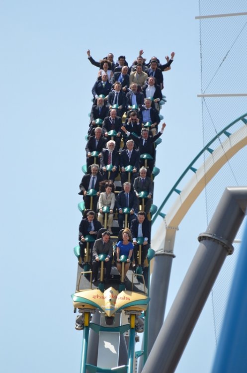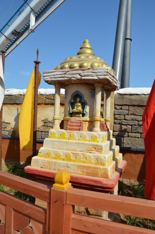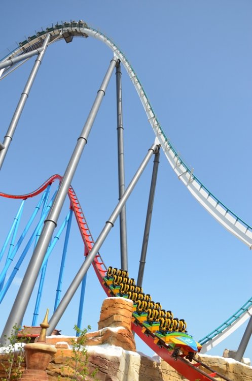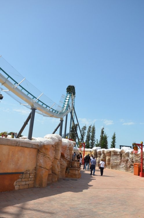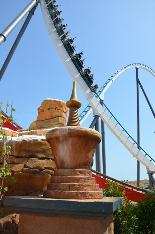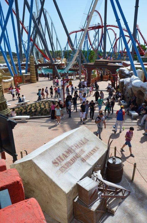 Today was the opening of Shambala at Port Aventura in Spain. I was not sure what to expect from this ride, but i can say that i was pleasantly surprised by the ride and the airtime it produces. The first drop in the back is great (as can be expected when being flung over the top of the lifthill) in the front the view down and basically not seeing where you are going is great as well. The speedhill produces a nice amount of air (more extreme then the rest of the ride) and the splash zone is cool due to the fact that the entire train can see it and you are riding that tunnel opposed to creating a "wake" behind you. It's long enough and a lot of fun (i think) Here's the POV And here's a few pictures from today. Enjoy part1 now look at that view but first things first, presentation time a show with fire?? plus just chillin timeline / history of the park theming concept arts technical details about the ride how to explain airtime more details next show, this time music just rocking a breeze is always nice is it time to ride?? more shows lots and lots of camera's important people theming, which confused me for a second.. it's shambala yeah confetti lots and lots of camera's and yes, there were plenty people the suits get to ride the first train front row fun these trains are really pretty an empty station (which was rare for the rest of the day) the new skyline wheee better picture of the entrance portal fake snow always helps the station/que building random riders up the stairs to ride the ride and the express is that way Hi Larry it's a globe.. (i think) for all the nuts and bolt enthusiast walls of water going up going down water spray starts before the train gets to that point don't worry, it's only water look mommy, i'm over here first drop fun is getting started.. second row right: mommy gravity can be very annoying and off they go big drop another train wardrobe malfunction waiting to happen in the distance (helix) i spy hairtime weee sorry Hkan, we won't forget you that is a big drop going up it opened may 12th hello red coaster track plenty of details in the area the water/splash area here they come there is a coaster in this picture