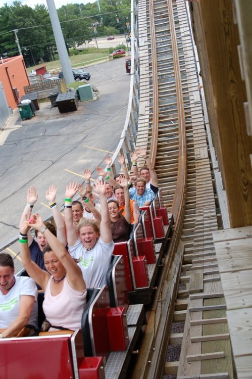Day 6 consisted of more fun at the Wisconsin Dells. To keep things simple i'll do three posts.. This one will be with the selection for Riverview Park, next one will be Timberfalls and the last one will be more of Mt. Olympus Enough said.. picture time Thanks for the fun, now is the time to go to the next park.. Dizzy dragon fun nice One of the rides.. what a difference.. Enough is enough... Going backwards Air.. See... Plenty of ai (look at the nametag) little bit of hairtime Random people Hold on ehmm laterals? Looks like some liked it.. ehmm trying to be creative.... why did i take this picture? another fun ride walking.. more credit "whores" Next single rider thumbs up simple onride picture single rider How to build a line? enter 100 coaster nuts in a single park.. -