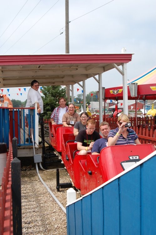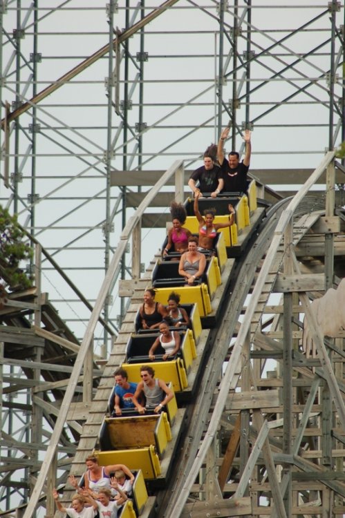 The second part of day 3 of this trip we visited Beech Bend. Home of Kentucky Rumbler.. and more thanks rumbler for the awesome rides.. i'll take more pictures if i can come back trying to get the lights of the train on.. Curves and yes.. the train was flying They loved it some rumbler action with the fading light... see what i said above? It was getting later and still no pictures from rumbler.. and i tried to be creative.. splash powersurge after schock? I guess a lot of people have similar pictures... from across the lake.. even a better distance Water park part of this lovely place almost done big smiles turning spotted power surge.. White water express with blue water??? No way i was getting closer that day again.. more sunset pictures total shock, so i forgot to take pictures of other riders Random attraction seen from across the lake having fun "bingo" moment.. ryan on his knees to get back the cap he lost and casey found.. it is tough to be a credit whore must come down.. what goes up.... airtime Why did i get on this drop tower? or.. why aren't these girls talking to me?? Happy faces ehmm Drop tower the first ever visitor of the park? Having fun Moby Dick (as you can see) little surprise yes.. it's a spinning mouse.. First drop goodness Look mom.. no hands Having fun? getting ready for departure.. onride action First things first.. let's do a credit run ^ see Build it and they will come... Almost there.. This bridge was not for cars... -