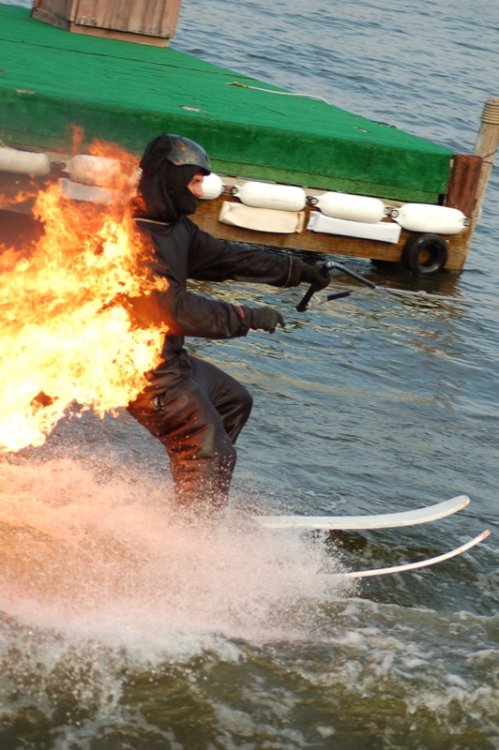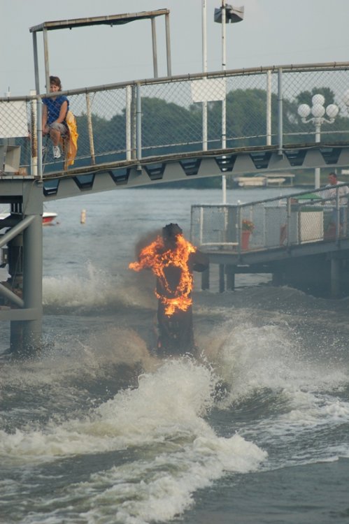 Here's the second post for Indiana Beach. I was so "impressed" by the stunt team that i took a lot of pics. It is something we don't have in the area anymore I just wanted to share some of them with you. So enjoy or don't look at them Last one for this update. Thanks for watching More fire time to act a little just missing the "right" nose rope jumping Pirate show action time well done guys After a few practice runs it worked can we make it? double front flip practice Look at the camera pratice run? needs more practice time to talk to the ladies almost there... Practice fun remember a few photo's back?? this is what was supposed to happen.. a little higher and then dive over the jetski end of the stunt show style front flip of the ramp show off Best way to take out the flames oeps, i forgot something... don't worry.. i'll be back.. nice and close Hand over the fire more fire spin was added Back flip mr. funny was taking a break After multiple spins.. still being able to control it... next one More people watching in the background lift off up side down running man skills Let's swing Tattoo?? mid air time for some wakeboard action The dive from the ramp trick I just like this picture and getting down.. as it later turns out.. this was not they way it was supposed to go Going up setting up.. don't worry about water getting in the boat while turning can you see the heat? There should always be fire at a stunt show still standing take off Mid air flip or twist action Touchdown after jumping together of the ramp -