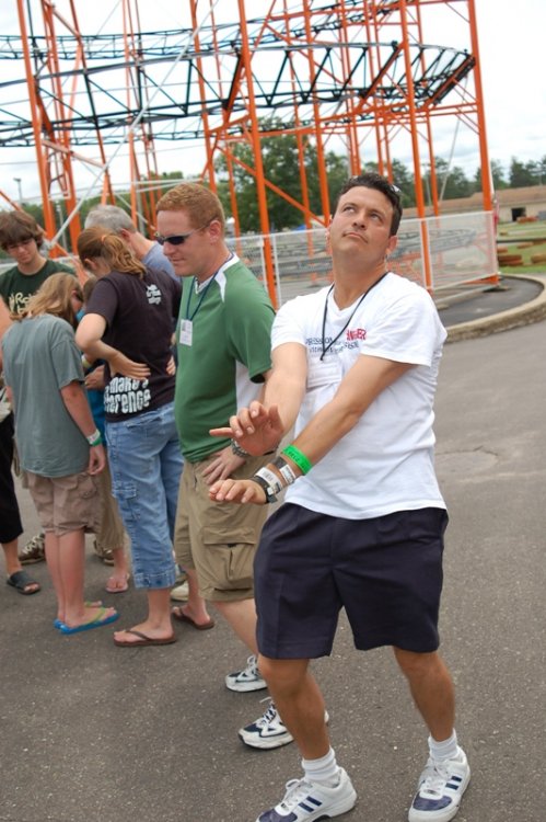 Thanks for those nice words robb, now i have to be even more carefull "not to walk besides my shoes" (translation of a dutch saying, not sure if everyone else is familiar with it) anyway... Day 4 Indiana Beach In my opinion a nice little park which reminded me a little of Blackpool. I did however spent a lot of time watching the water stunt team and took a lot of pics of their stunt show, their practice and some of the pirate show (with worse light conditions) therefore i'll do a 2 post update, first post will be park pictures (as seen before) the second one will be only about the water show people After this it was time to get back to the bus Fun for all ages Look mom.. no hands ERT time, since it was raining.. we got the bumper cars shooting gallery I like lights (and i missed my tripod ) Time to go home?? After sunset Why did i take this picture??? Who gave that to Robb?? you know he's gonna "play" with it Total focus TPR takeover at ball game (forgot the name) Here's how it ended.. one big pile of people Remember the video? Casey tackle Ryan? Random lights funky little detail Hi there Time to start turning the lights on Security kicked this person out of the park after seeing this picture (and seeing him doing the same thing on the next train with their own eyes) next train remember the sign and the station? Random people on hurrican getting ready to go underneath the bridge which we crossed to enter the park... How was lost coaster? Hard to miss Train credit Riding of into the sunset (i personally love this picture) spooky... random people on cornball Theming Time was flying.. and so went the sun.. still dry.... splash battle ship through the trees Lost coaster Feeling almost back at home (i come from near "the chicken capital of the netherlands" Looks like it was ok... First swing reaction Did he pull the correct cable? That's a normal face... see?? Skycoaster advertizing team ehmm Waiting in line.. locals? next group onride "action" screamer? Looks like they had fun Familiar faces "stupid" fence feeding time splash battle time do we need a park map? random (confusing) sign Clear warning sign on Hurricane. I'll come back to this later... Coaster within water slides?? or waterslides around a coaster?? cool down tool you cannot go any further... random theming Part of the park seen from "above" Lost coaster lift random people lucky shot ( 2 trains from different rides) First impression of the park from the bridge here we go, don't bother the shaking bridge Almost there First of a "long" drive. Robb was hard at work to keep the dvd's running. Thanks KidTums for the fan -