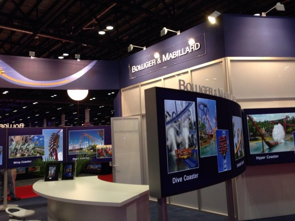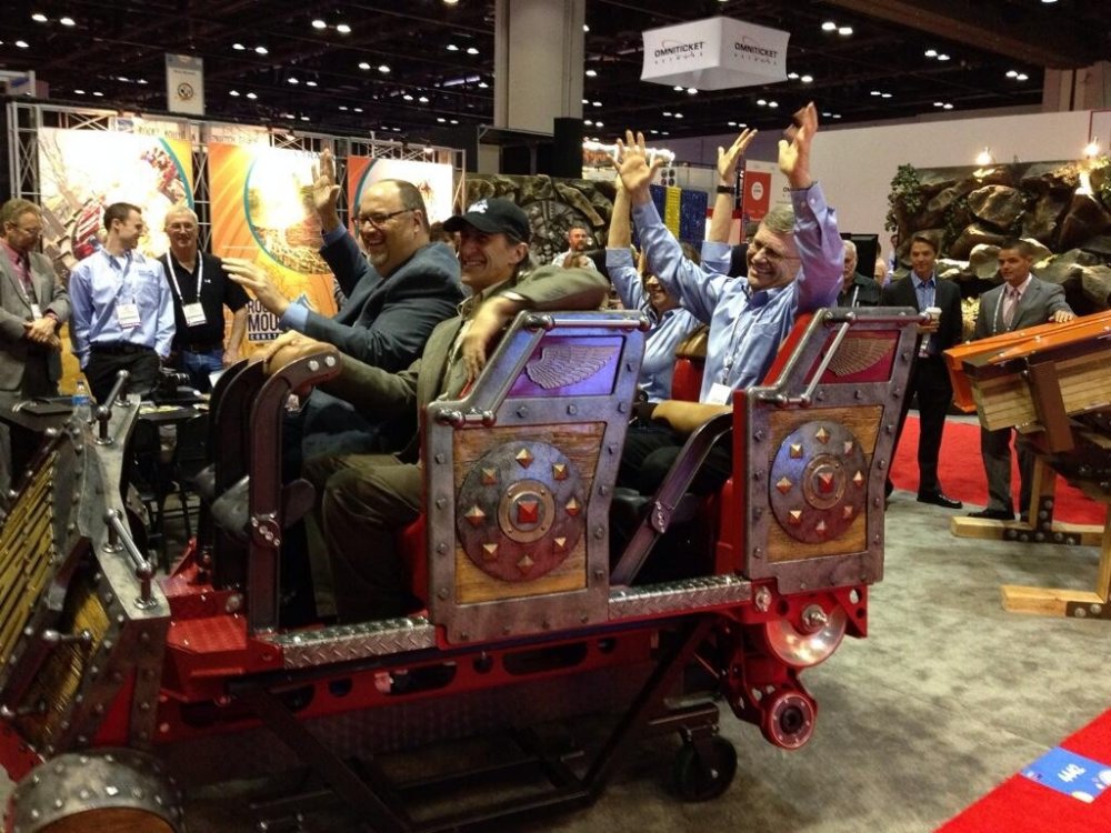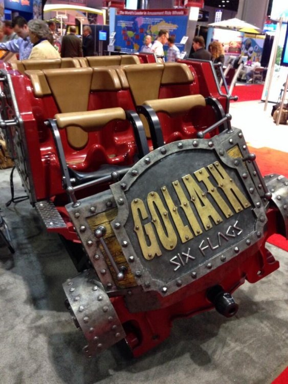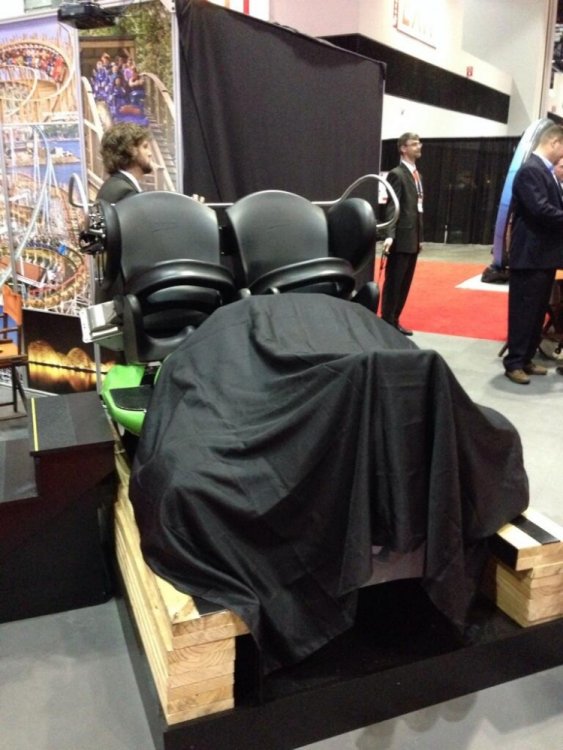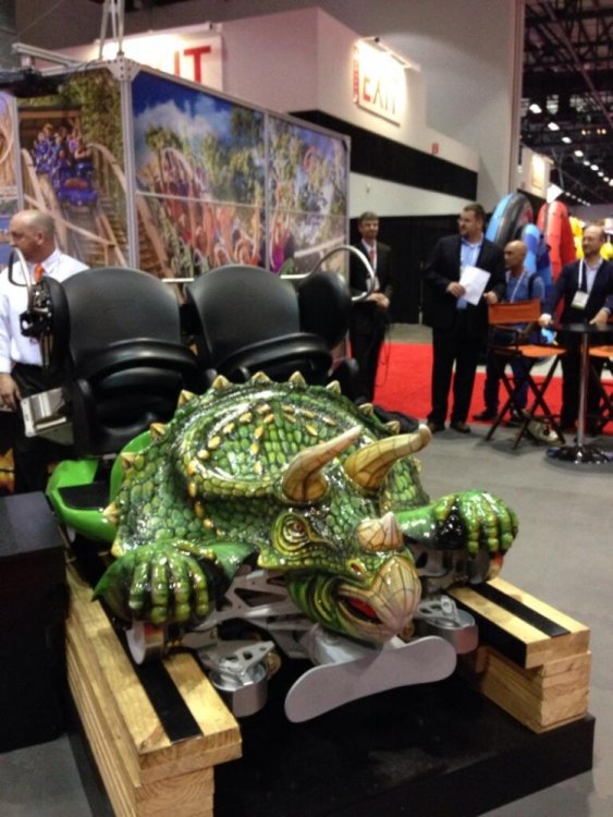 More photos from Day 2! But first a video of S&S testing their next generation 4D coasters! [vine] [/vine] KumbaK has an "replacement SLC" train from WBMW in Australia on display. It was comfy! Six Flags Great America is about to unveil something at the Rocky Mountain Booth! What could it be? The Goliath lead car for Six Flags Great America has been officially unveiled! About to see something new from The Gravity Group. What could it be??? Story land in New Hampshire has announced a new Gravity Group woodie! Roarasaurus!!!
