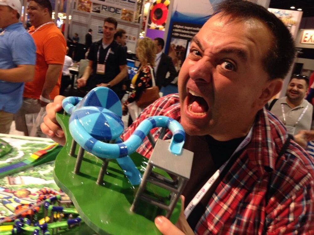 Can you take more photos??? Here's another look at the S&S El Loco car for Adventuredome in Las Vegas. YOLO! TPR doing our IAAPA interviews! This is Rich Hill with Sally Corp. Say hello! Amazing new animatronics at the Sally Corp booth. This years weird IAAPA food item... Funnel sticks! PTC has their wood coaster trains on display. Yes... There are animal inflatables! And here is a video of Mack Ride's new "Drop N Splash" water ride concept: [vine] [/vine]