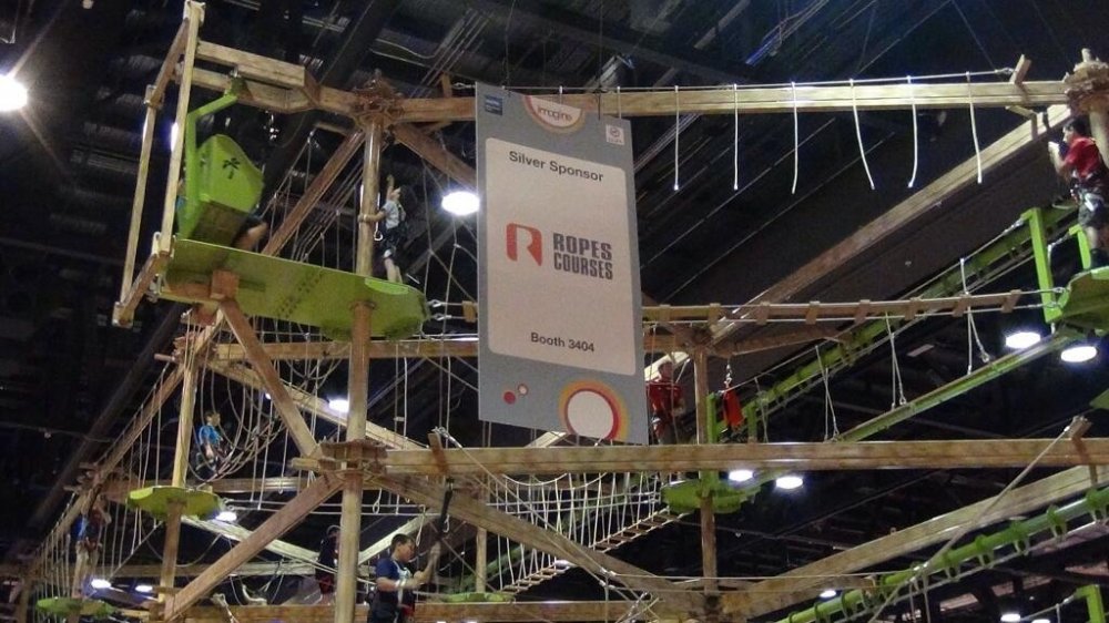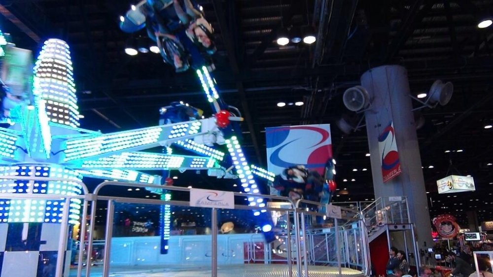 More! Roar-O-Saurus at Story Land will be a TGG junior woodie about 1,242 feet of track & 40ft tall! Maus au Chocolat at Phantasialand is one of our favorite dark rides! Alterface developed the shooting system. Look who I ran into! Lisa Rau from Silver Dollar City. We love her! (And her park!) View from the top of the lift of Coney Island's 2014 Thunderbolt! Ropes Courses was back at IAAPA with what seemed like an even bigger course than last year! More parks really should buy the Zamperla Air Race! Hell of a lot of fun! Here's another close look at that Thunderbolt model. Could be a VERY interesting ride!