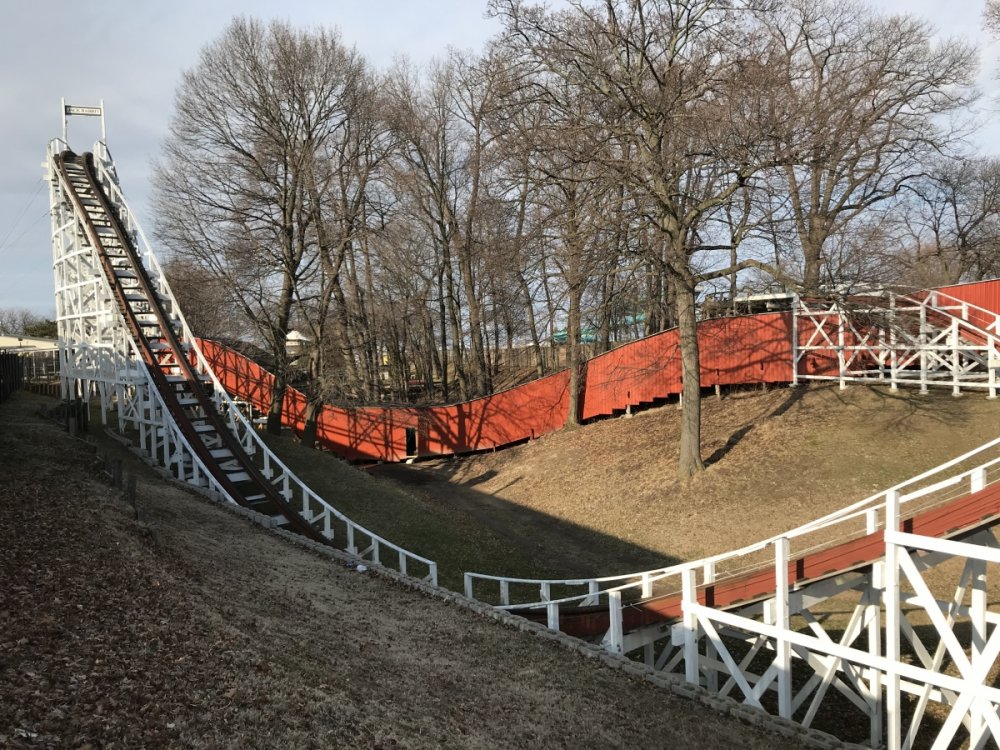 Seabreeze Amusement Parkwildcatroc replied to Matman-TheRide's topic in Theme Parks, Roller Coasters, & Donkeys! Here are a few pictures of the Jack Rabbit in her wintertime slumber. Since the park closed in September, the second drop has been re-tracked, the brake run was rebuilt, and some track work was done in the tunnel. Jack Rabbit will be 99-years-old this year and, as always, running beautifully! Photos shared with park permission.
