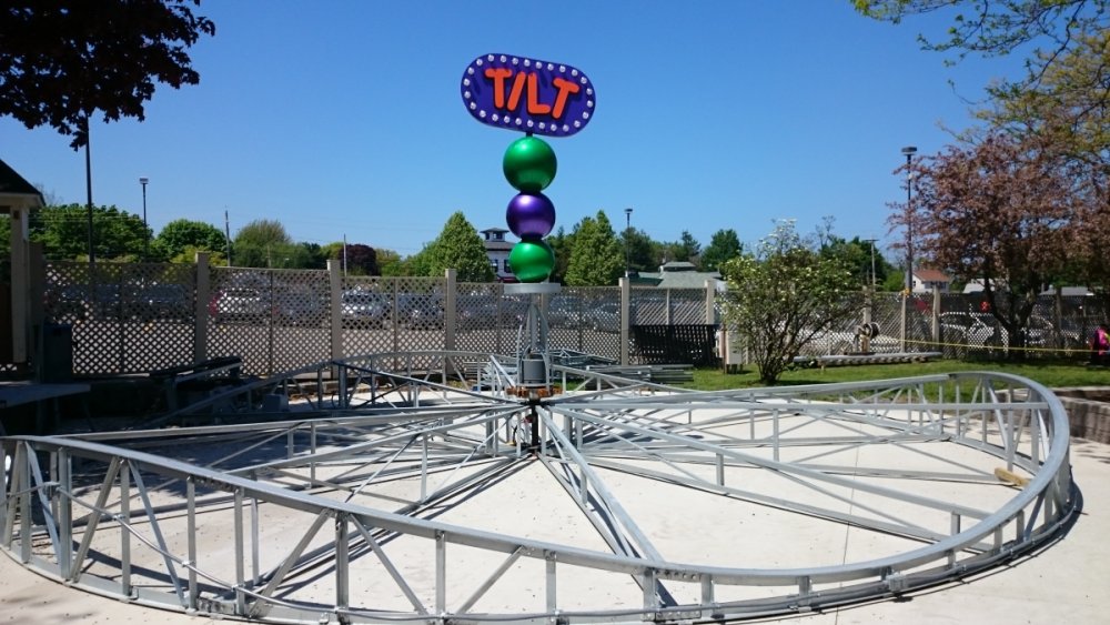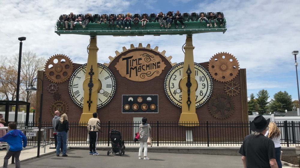 Seabreeze Amusement Parkwildcatroc replied to Matman-TheRide's topic in Theme Parks, Roller Coasters, & Donkeys! A few pictures of the new Time Machine, a Super Miami ride by Technical Park of Italy. The theme was designed locally in Rochester, based on a concept developed by Seabreeze Park, with the work completed by park staff. There are a few small pieces to be added yet, but by large the ride appears to be complete and it seems to be a hit with park guests. Time Machine is located on a site adjacent to the front gate, next to the Tilt-A-Whirl, where a smoking area was previously located. The dial on the Time Machine is set to August 1879, the month and year during which the first trainload of visitors came to Seabreeze (then called Sea Breeze Park) on the newly constructed Rochester & Lake Ontario Railroad. A view of the Time Machine, under construction, from the southern side of the Tilt-A-Whirl, by the Jack Rabbit. All aboard the Time Machine. Destination: August 1879 A view from the parking lot. A new fence, gray and white in color, has been erected. The building behind the Time Machine, which houses the machinery, was designed to complement the existing buildings at the front gate.