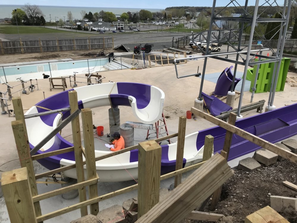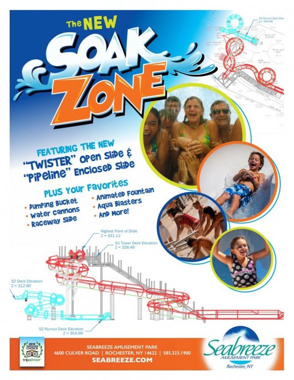 Seabreeze Amusement Parkwildcatroc replied to Matman-TheRide's topic in Theme Parks, Roller Coasters, & Donkeys! The two new slides will be a nice upgrade to Soak Zone. The straight pink kiddie slide has been removed and is being replaced with a slide of the same height, but with a 360° twist. It will be tunneled. The second slide, a new addition to the sprayground, will be an open-air family-sized body slide. The colors of the slides will be dark green/light green and purple/white; they ought to look quite nice and be well received by park guests.
