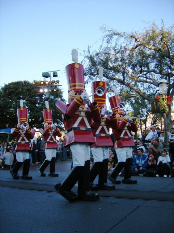 PART 2!!!! We woke up bright and early on Tuesday morning the 30th to get to Disneyland. We were there just as the park opened and headed straight for It’s A Small World Holiday. I had never ridden it before so I was really excited to experience something new. Ever since I was young, Small World has been a favorite of my Mom and I, so we were really excited to see the Christmas version. This was the first time Mom and I had been on Small World together since 2001! I must say, I was very impressed with Small World Holiday! The song was adorable and the Christmas lights and decorations looked great. Mom and I had smiles on our faces the whole way through and even Andrew enjoyed himself. The whole ride really does convey the meaning of peace on earth and leaves you with a warm feeling inside. The refreshed paint on everything looked wonderful and it is great to see an old classic getting the attention it deserves. Also, I was very pleased to see some of the rainforest still there! That was one of my favorite parts when I was little and I’m happy it did not disappear. I will be interested to see in May what is lurking behind the black curtains in the Americana section… Personally, the idea of an America section in America is a little odd, but hey, we’ll see it when it’s here and hopefully it won’t subtract from the experience. After Small World we headed over to Haunted Mansion Holiday!!! The Nightmare Before Christmas is an awesome movie and I was excited to see it brought to life (or would that be death… ). Before this trip I had never been on this attraction either, so it was another treat to see this. Haunted Mansion is one of my personal favorites and it was awesome to see it this way! Like Small World, I was extremely impressed by Haunted Mansion Holiday! I had seen videos and pictures of it before, so I had high expectations, but even these were blown away. The level of attention and detail was AMAZING! The outside looked great (I’d love to see some of the decorations stay all year round like the pumpkins and skulls) and the inside was even better. I loved how the ballroom smelled like gingerbread, too! The man-eating wreath and Jack Skellington were much bigger than I thought they were, something that was both surprising and pleasing. The imagineers did a wonderful job on this and I can’t wait till I get to see it again sometime! After seeing both of these rides, we ran over to California Adventure to ride Toy Story Mania. We were there on the opening day and week of Toy Story Mania but due to huge lines and it breaking down and having to be evacuated when we were about an hour into the line, we never got to go on it. Before we went on we got fastpasses for Screamin’ so we could go on this before we left the park. We FINALLY got on Toy Story Mania and it was a blast! It really was much more fun than I thought it would be and it left us wanting to go again. I do take pride in that I beat Andrew by about 10,000 points ! Before heading back to Disneyland we went on Screamin’ and it was great as always. Right before the big drop, the music oddly cut out… My reaction and cynical comment was pretty funny though, and probably left a few people worrying if they heard it. Right after it cut out I looked at my Mom and said, “Well, I hope the brakes work!” We then headed back to Disneyland because we didn’t want the gates to close before we got back in. They DID close later that night but we were safely inside so no worries! If anyone knows the number of guests Disneyland can hold before they shut the gates, I’d be interested to find out. We spent the rest of the day wandering around Disneyland riding as much as we could given the crowds and saw the Christmas parade. Before the parade the marching bands from Penn State and USC marched down Main Street. Since Andrew’s Dad is a UCLA fan, we had to take pictures of the USC band for him . The parade was wonderful and we had great seats! I really did enjoy seeing this again and it just added to the holiday experience in the parks. The rest of the day was fun and we won dream seats for Fantasmic later in the evening! This is Andrew’s favorite show so we were happy to get them! We waited about an hour and got front row seats for Believe in Holiday Magic. Unfortunately there was absolutely NO wind so the smoke hung around blocking our view of many of the fireworks. Even through the smoke, the fireworks were beautiful (this gives me another reason to go back for Christmastime, I gotta see the fireworks!). We loved seeing Fantasmic with the new projectors, they really do make the images much clearer! Between the time Fantasmic started and ended, really thick fog rolled in. This made for some interesting pictures of Main Street with all the lights glowing in the fog. We had a wonderful day filled with holiday magic (cheesy, I know ) and really enjoyed getting to see all the special things for the holiday! Now, here come the pictures! Part 3 is coming tomorrow night with Castle Walkthrough pictures, Inside Haunted Mansion Holiday pictures (our Doombuggy stopped!!!), and New Year’s Eve!!! The last picture of the night Merry Christmas, one and all! No, it's not blurry, that's just all that fog... Kinda gives the castle a cool glow LOTS of fog Awwww family photo I need to learn how to do that to my house My favorite castle picture BRING BACK THE COUNTRY BEARS! Gotta love the reindeer DANCING RODENTS!!! For all those rodent lovers out there Can you tell who my two favorite Princesses are? And thank you Ariel Thank you for waving right at my camera Aurora Such a pretty dress! Making more friends from the parade Hi Mickey!! This Snowperson was my friend She stopped so I could get a good picture! These outfits are so pretty! I love the Toy Soldiers I want one. Now. CHRISTMAS PARADE!!!!! Donny Osmond was the grand marshall for our parade... Can't you see my excitement....... We have UCLA fans in the family so we took photos of