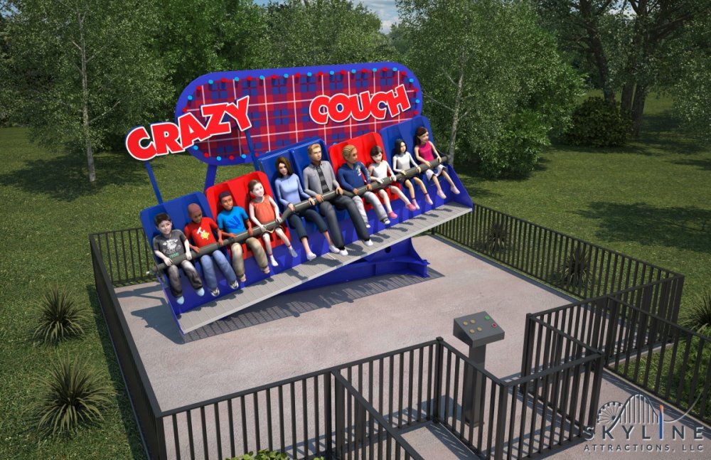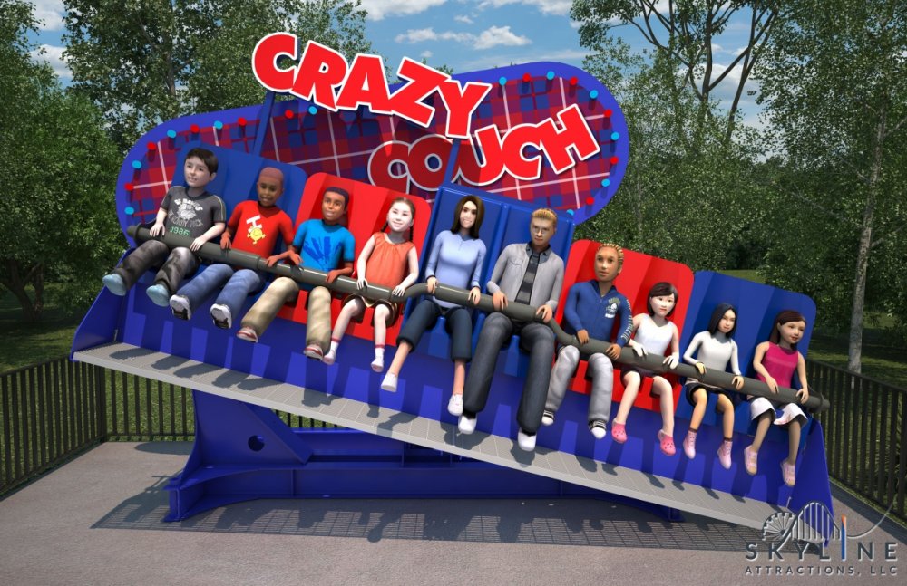 Ready to boost profits with a low-cost, low-maintenance American-made kids' ride? Skyline Attractions enhances company's portfolio with Crazy Couch 19 October 2015 Orlando, FL - Another year means another new product from Skyline Attractions. The company excitedly announced today a new kids' ride, lending its quality American design and manufacturing expertise to a market desperately in need of something new. "We've been hearing from operators how rare it is to find something new and reliable for kids that is American-made and supported," the Skyline team said. Accepting that challenge, Skyline applied its clever design techniques to achieve fun new motions unique to the industry in a simple and easy-to-maintain package. The result: Kids and adults tilt side-to-side and up-and-down in the zany experience of Crazy Couch! Interest has been crazy big, resulting in a purchase of Crazy Couch even before it rolled off the production line! The ride seats up to 10 kids per cycle, or up to eight kids with two adults. Mobile and fixed-site models are available, which are both crazy simple to operate and ridiculously easy to maintain. With fixed-site models under $99,000, operators would be crazy not to take a look. The release of Crazy Couch comes a year after Skyline's introduction of the revolutionary GamesURide product line. "Our two debut GamesURide - Strike-U-Up and Spin-U-Win - have been operating all summer, making money for parks. We have the data to show that they are fun additions to facilities - with crowds of onlookers and queues forming - and, most importantly, can generate serious profit, too." Crazy Couch will be at the IAAPA Expo next month in Orlando, and Strike-U-Up will be making a return alongside. Come ride and play at booth 3873! -