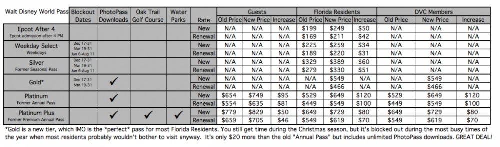 Even though we have discussion threads for all the WDW parks, I'm just going to put this in here... This morning WDW announced New Annual Pass prices that INCLUDE unlimited "PhotoPass Downloads" on many of the options. IMO, this is a GREAT benefit and with most photos being $15 - $20 each a huge value added to the pass. Of course, many Disney "fans" are freaking out over the new prices which I just don't understand. They have added a new "Gold" tier for Florida Residents, and while it does include some blockout dates, it's a GREAT deal considering the blockout dates are some of the worst days at the parks anyway and you still get free parking and PhotoPass. It's only $20 more than the old "Annual Pass" and while, yes, you lose some dates, you gain PhotoPass! I think that's awesome.