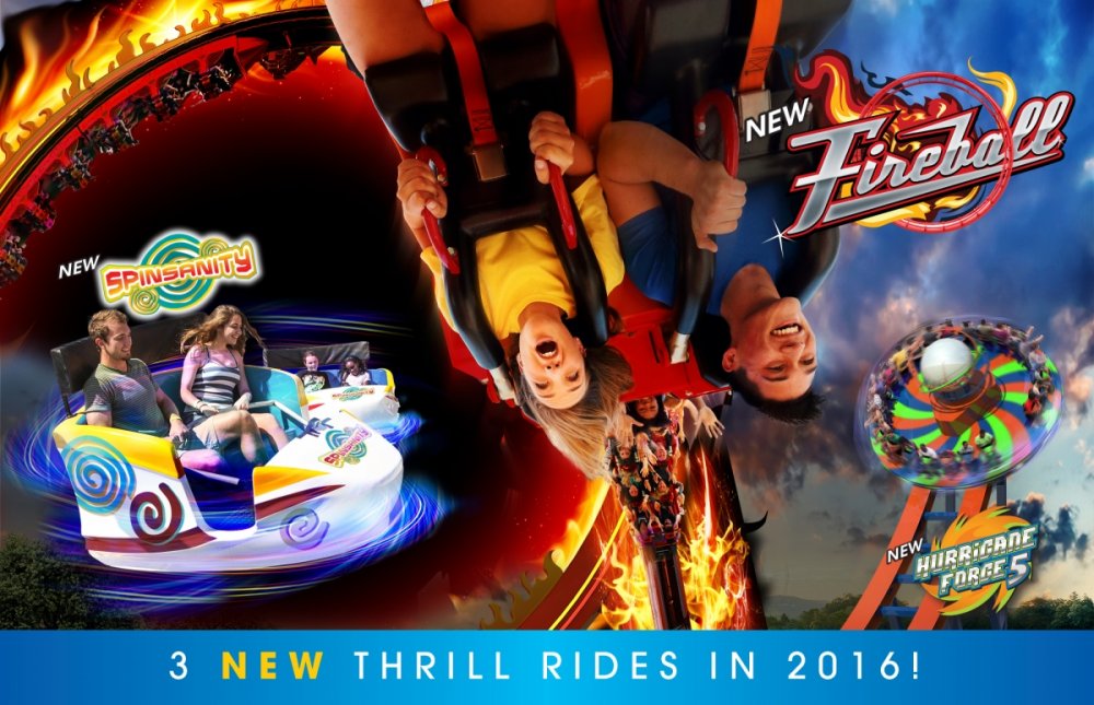 3 New Thrill Rides Coming in 2016 At Six Flags Fiesta Texas Major Boardwalk Area Enhancements Feature New Guest Amenities Prepare for sensory overload as three new mind-bending rides anchor an exciting new Fiesta Bay Boardwalk in 2016 at the Thrill Capital of South Texas, Six Flags Fiesta Texas. Guests will find themselves looping, spinning, and soaring as they experience the new high-adrenaline thrills on Fireball, featuring a massive 7-story looping frenzy; Hurricane Force 5, where riders take on the power of a storm and swirl round-and-round while soaring high into the air; and Spinsanity, the ultimate whirling adventure for daredevil riders. “The entire Fiesta Bay Boardwalk area at Fiesta Texas will undergo a spectacular transformation in 2016. The three incredible new attractions will bring completely new types of thrills for our guests, as will our new culinary and interactive games offerings,” said Park President Neal Thurman. “The new Boardwalk will have all the excitement and ambiance of a favorite seaside getaway.” Headlining the 2016 roster of thrills is a Texas-original, Fireball. With its unique seating pattern, Fireball will deliver an unanticipated weightless swirling action as guests encounter: A “face-off” with 24 riders seated face-to-face to begin their journey; The thrill of being rocketed both forward and backward, through a bedlam of loops; Being suspended upside down 72 feet in the air. Another distinct offering in this new trio of thrills – Hurricane Force 5 will rotate both clockwise and counter-clockwise with guests sitting on motorcycle-like seats facing outward. This giant 24-passenger hurricane-shaped disc will arc from side to side on an almost 5-story high half-pipe track while rotating at 14 revolutions per minute. This innovative attraction is a first-of-its-kind in the state. A third new attraction, Spinsanity, will send riders spinning, twisting and rolling through a cycle of classic, thrilling fun. This modern adaptation of a traditional Tilt-A-Whirl will provide more panoramic, unobstructed views and will be unveiled the same year as the 90th Anniversary of the original boardwalk favorite. In addition to these three new thrill rides, the entire Boardwalk area will receive additional guest amenities, including new, brighter facades for all current Boardwalk offerings; new food and games locations; and refreshed wooden planking underfoot throughout! For more information about upcoming 2016 Six Flags rides and attractions, including a video highlighting the new rides, visit http://www.sixflags.com/2016news - See more at: https://www.sixflags.com/fiestatexas/attractions/new-2016/news-release#sthash.ZRqIP3Jz.dpuf