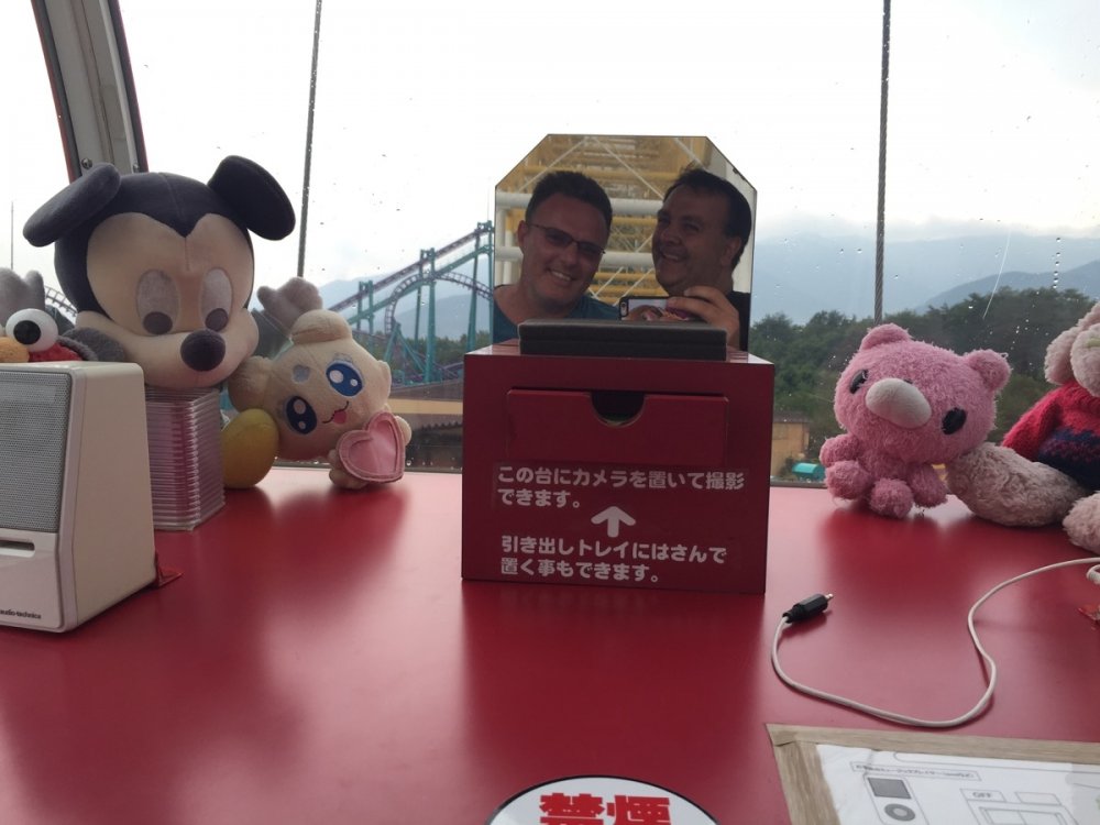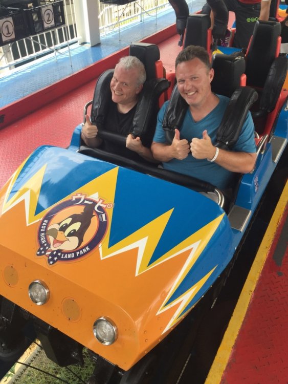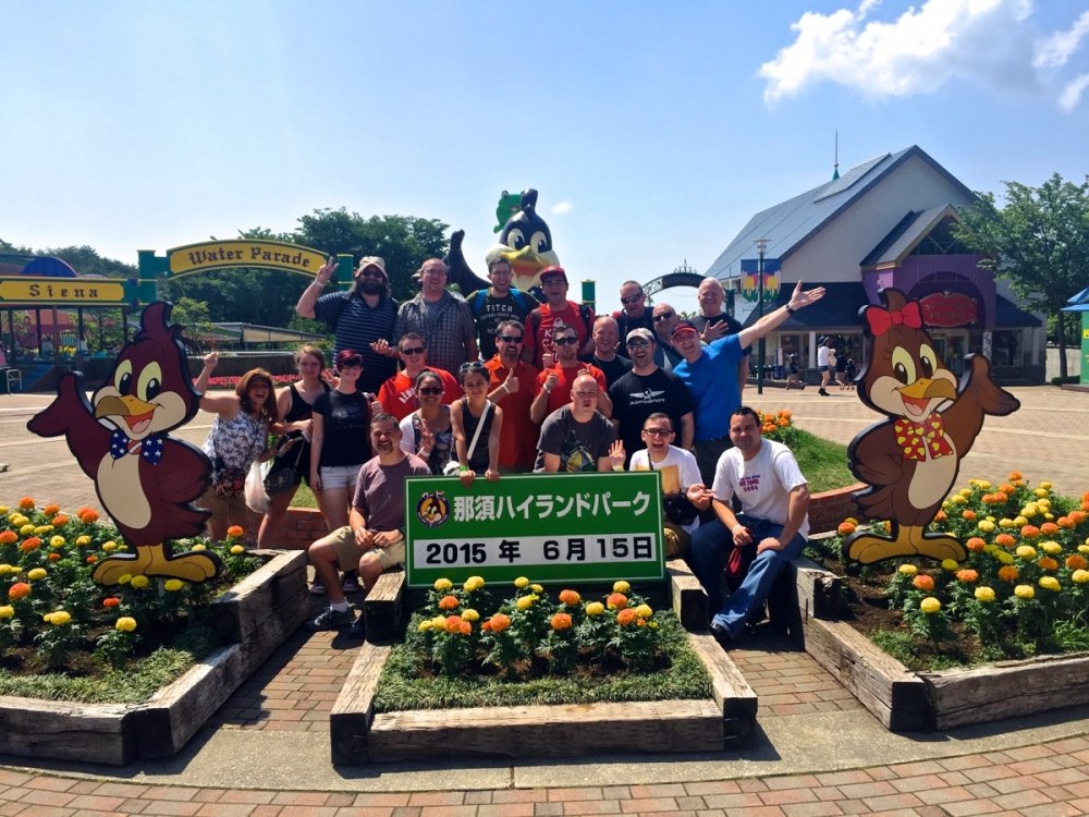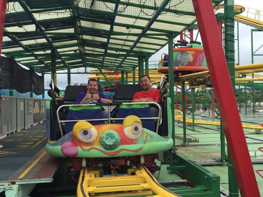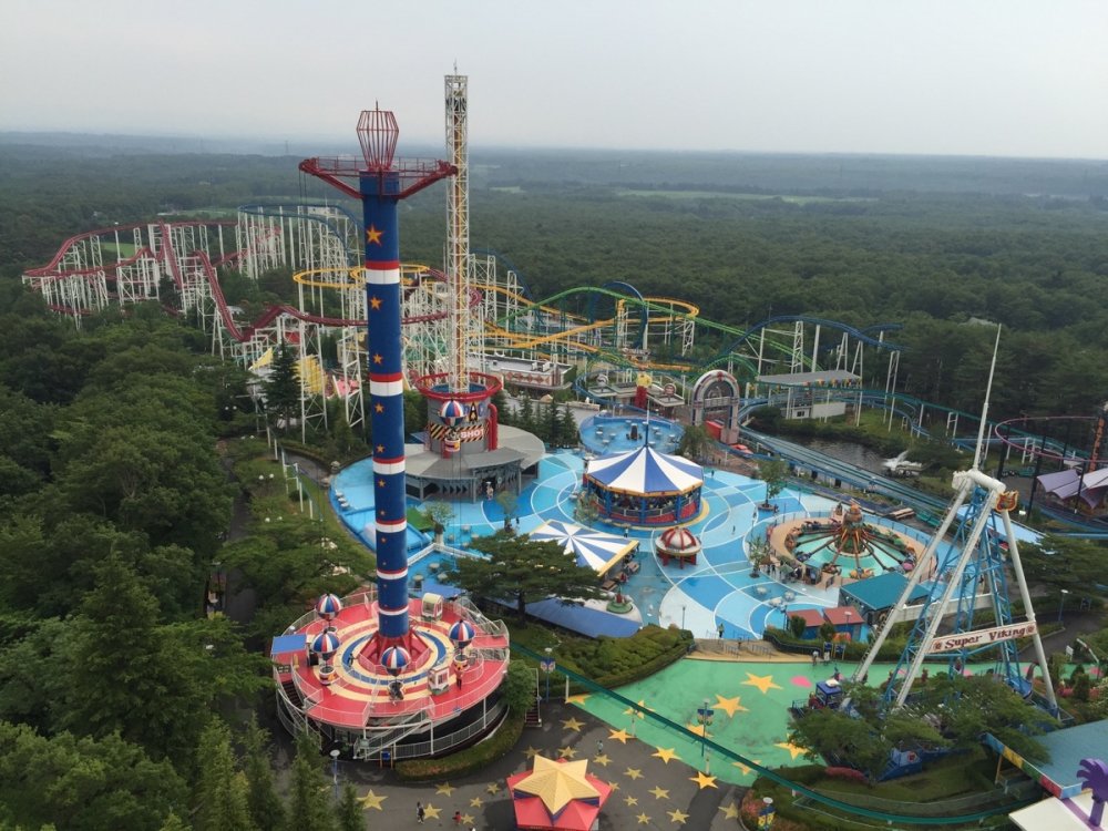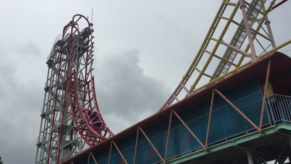 18. Our next adventure was Nasu Highland Park, which is a couple of hours north of Tokyo by train & taxi in a more mountainous resort area of Tokyo. It snows here during the winter and this is the park that we filmed our famous 'roller coasters in the snow' video at many years ago. We really like this park a lot. It's hard to describe because like a big American park like a Six Flags or Cedar Fair park, it has a lot of big roller coasters, some petty good ones, decent amount of flat rides, a couple of dark rides, and really is a "full day" amusement park. But it doesn't look or feel like any US amusement park. There are things very uniquely Japanese about it and I'll get to some of those in the photos below. There are a couple of coasters here, namely Big Boom and Spin Turn, while they aren't going to break my "top 20" list by any means, they are very SOLID and really fun rides! Some of the better in Japan so that certainly makes this park well worth the visit! Remember, we are live tweeting from Japan so follow us on Twitter @themeparkreview - Onto some photos... Shall we start the morning by grabbing a beer from the hotel vending machine? Could you imagine how well that would work in America if hotel vending machines had beer in them? lol We have arrived at Nasu Highland! Thank you Woopy! It's a beautiful day out today, and should be awesome to hang out with some friends at this park! They have a lot of random fun collection of rides. Gotta love anything called the "Hello Kitty Pop N Smile" ride! Gotta find someone to bring back here later! <3 First coaster of the day! The Batflyer! Or is that the Bat Fryer? Hello Elissa & Kristen! There are not many Bat Fryer's left in the world! Although I think Japan has two or three of them. You can ALMOST fit two "western-sized" adults in the cars! Wheeeee! The are short rides, low capacity, but they are actually kind of fun! Love the super huge pirate ship they have here! The lower section of the park, where they have their four bigger coasters just looks like a mess of track with them all built on top of each other. And this is BIG BOOM! Big Boom is a super funky ride but it's a LOT of fun! First off, it has this really steep drop. It's not vertical by any means, but it certainly FEELS like it, and you really are cruising pretty fast when you get to this point and get whipped over that drop! Some thumbs up for Big Boom! I personally prefer the crazy airtime you get in the front seat! You get some awesome airtime over this hill going into the vertical loop. It feels like straight down! Loop-de-Loop! Gotta love the crazy amount of tires they use to stop the trains at the end of the ride! It had rained a bit during our visit, so the ride op was out there blow drying the tracks to get the ride re-opened sooner! I love Japan! Here's a video of Big Boom we shot in 2011 to get an idea of what the ride is like: Spin Turn is another really crazy ride! So at the start, it goes kind of slow...but if the cars are balanced just wrong...by the end of it you will spin more than on almost any other spinning coaster! It's crazy! Camel Coaster is pretty much your typical Japanese "Jet Coaster..." Which kind of means it's really big, really long, but doesn't do anything that special. It's sort of like a really big mine train. The section has this bizarre USA 1950s theme to it... ...with a decent collection of cars! Hmmm...Selfie Sticks or Frozen? I wonder which I'll choose? WE ARE ON A LOG FLUME! Check out our new video! It really pissed a bunch of people off so that means it must be AWESOME! lol And of course VIDEO of "We Are On A Log Flume..." "They are on a log flume..." So the park has a Vekoma SLC.... With an unhealthy amount of head padding... I have no idea what they did to this one, but it really is one of the ROUGHEST SLC's I've been on. It's like T2 bad. The extra padding DID help, but WOW! It was brutal! Here's the POV of Nasu's SLC. As you can see, this version is... um... "Not Good!" lol You cannot bring ice cream on the SLC...just in case you were wondering. Nasu Highland has this amazing food option.... You can rent a stick or a fishing pole, go to the river and catch a fish, then they will cook it for you right on the grill! So insane! Instead of catching a fish, we opted for the "Itarian Corner" for some food... Um...well, actually maybe we'll just stick to the Japanese corner... I pretty much live off Katsu Curry and Yakitori when in Japan. I don't think there is anything wrong with that! This place also had "Gyoza Curry" which was delicious! Yin even found a "Green Tea Churro!" Yummu! There really are a lot of double-decker carousels in Japan. Tokyo DisneySea has an amazing one that we will see later in the trip. Kristen had some good luck at the claw machine and will be bringing "Fluff" home a few new friends. The park had this indoor "kids discovery" center and one of the exhibits was all about roller coasters. This was seriously amazing as it showed different tracks, one of them that actually worked, and the other two that didn't. You would roll the balls down the track and one of them would make it and two of them would not. It was kind of like a real-life RCT! Especially since there was an area where you could build your own coaster track! Joe was very sad that the rain closed down the powered coaster...maybe next time, Joe. Oh, the park had one of these awesome safari shooting rides! You get in a little jeep, pull out your gun... ...and then start shooting animals! It's so un-PC it's awesome! And of course no Japanese park would be complete without a huge Ferris Wheel... Yesterday's Ferris Wheel was theme to cheese...this one is themed to fruit...of course! Two of the cars on this wheel were specially designed for "lovers." So of course I took Jack into one of them! "Hey baby! Those are some cute rodents on your shoulder!" The lovers car was amazing! It had speakers so you can plug in your own iPod to get a groovy lovers mix playing. Stuff