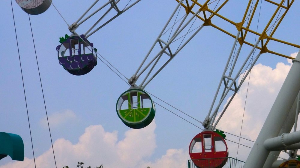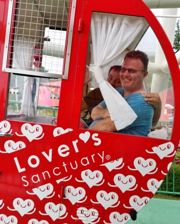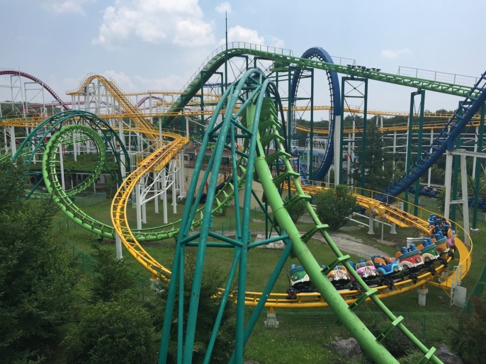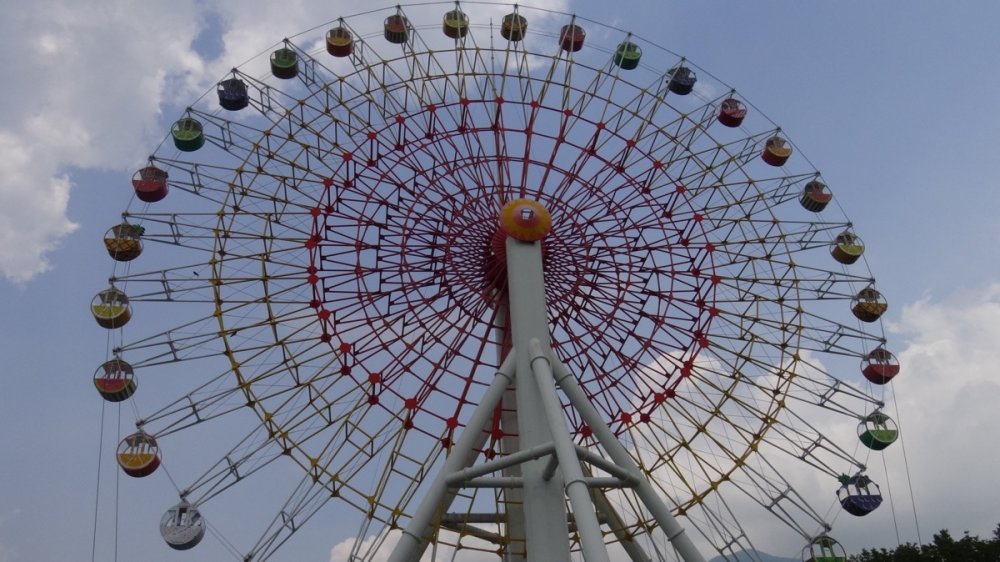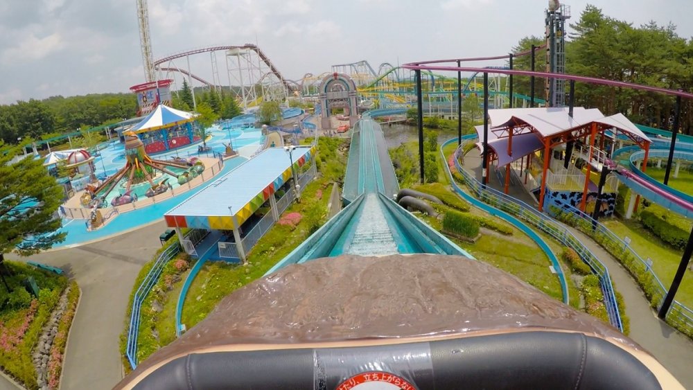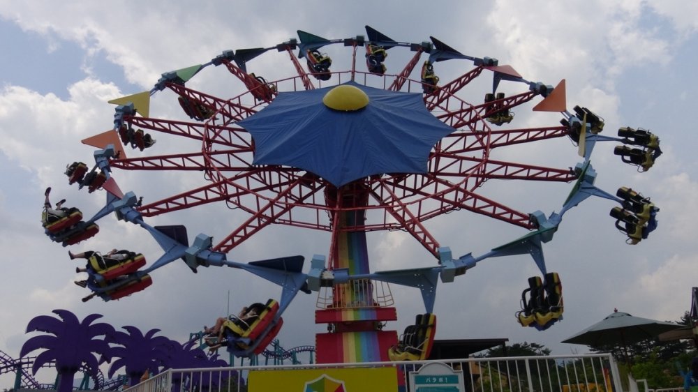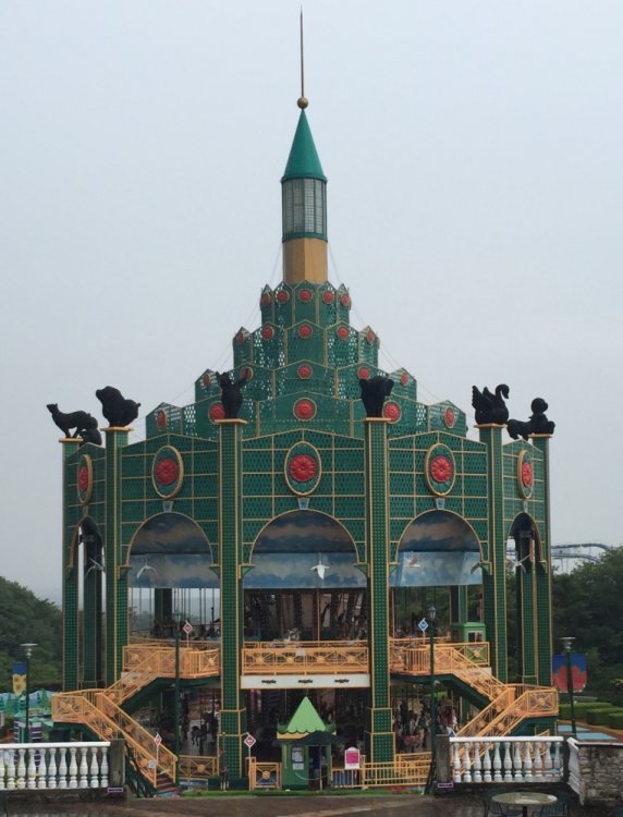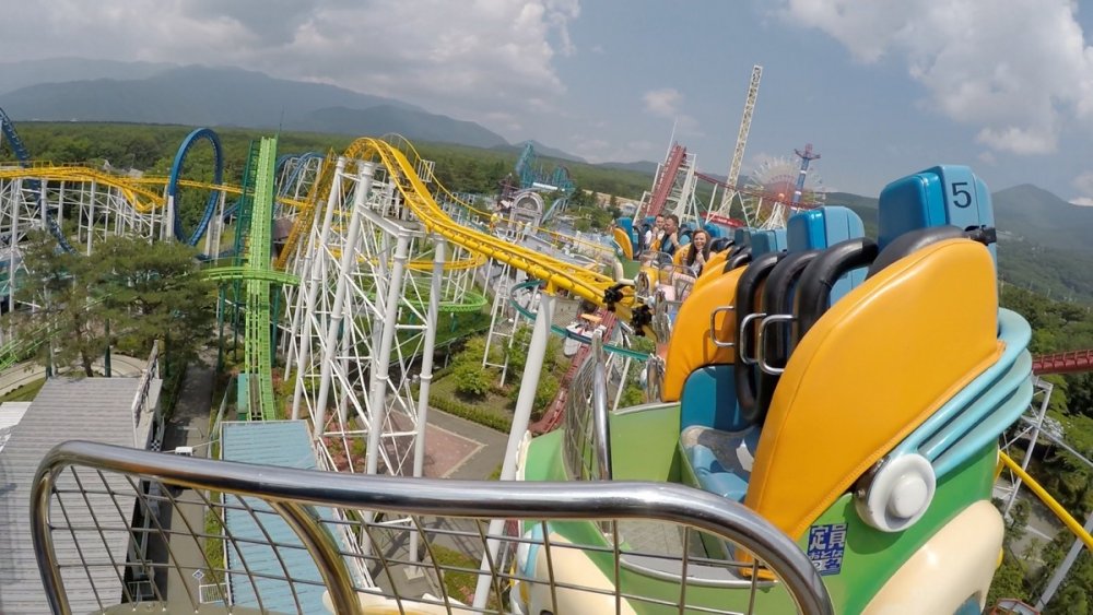 18. Our next adventure was Nasu Highland Park, which is a couple of hours north of Tokyo by train & taxi in a more mountainous resort area of Tokyo. It snows here during the winter and this is the park that we filmed our famous 'roller coasters in the snow' video at many years ago. We really like this park a lot. It's hard to describe because like a big American park like a Six Flags or Cedar Fair park, it has a lot of big roller coasters, some petty good ones, decent amount of flat rides, a couple of dark rides, and really is a "full day" amusement park. But it doesn't look or feel like any US amusement park. There are things very uniquely Japanese about it and I'll get to some of those in the photos below. There are a couple of coasters here, namely Big Boom and Spin Turn, while they aren't going to break my "top 20" list by any means, they are very SOLID and really fun rides! Some of the better in Japan so that certainly makes this park well worth the visit! Remember, we are live tweeting from Japan so follow us on Twitter @themeparkreview - Onto some photos... Shall we start the morning by grabbing a beer from the hotel vending machine? Could you imagine how well that would work in America if hotel vending machines had beer in them? lol We have arrived at Nasu Highland! Thank you Woopy! It's a beautiful day out today, and should be awesome to hang out with some friends at this park! They have a lot of random fun collection of rides. Gotta love anything called the "Hello Kitty Pop N Smile" ride! Gotta find someone to bring back here later! <3 First coaster of the day! The Batflyer! Or is that the Bat Fryer? Hello Elissa & Kristen! There are not many Bat Fryer's left in the world! Although I think Japan has two or three of them. You can ALMOST fit two "western-sized" adults in the cars! Wheeeee! The are short rides, low capacity, but they are actually kind of fun! Love the super huge pirate ship they have here! The lower section of the park, where they have their four bigger coasters just looks like a mess of track with them all built on top of each other. And this is BIG BOOM! Big Boom is a super funky ride but it's a LOT of fun! First off, it has this really steep drop. It's not vertical by any means, but it certainly FEELS like it, and you really are cruising pretty fast when you get to this point and get whipped over that drop! Some thumbs up for Big Boom! I personally prefer the crazy airtime you get in the front seat! You get some awesome airtime over this hill going into the vertical loop. It feels like straight down! Loop-de-Loop! Gotta love the crazy amount of tires they use to stop the trains at the end of the ride! It had rained a bit during our visit, so the ride op was out there blow drying the tracks to get the ride re-opened sooner! I love Japan! Here's a video of Big Boom we shot in 2011 to get an idea of what the ride is like: Spin Turn is another really crazy ride! So at the start, it goes kind of slow...but if the cars are balanced just wrong...by the end of it you will spin more than on almost any other spinning coaster! It's crazy! Camel Coaster is pretty much your typical Japanese "Jet Coaster..." Which kind of means it's really big, really long, but doesn't do anything that special. It's sort of like a really big mine train. The section has this bizarre USA 1950s theme to it... ...with a decent collection of cars! Hmmm...Selfie Sticks or Frozen? I wonder which I'll choose? WE ARE ON A LOG FLUME! Check out our new video! It really pissed a bunch of people off so that means it must be AWESOME! lol And of course VIDEO of "We Are On A Log Flume..." "They are on a log flume..." So the park has a Vekoma SLC.... With an unhealthy amount of head padding... I have no idea what they did to this one, but it really is one of the ROUGHEST SLC's I've been on. It's like T2 bad. The extra padding DID help, but WOW! It was brutal! Here's the POV of Nasu's SLC. As you can see, this version is... um... "Not Good!" lol You cannot bring ice cream on the SLC...just in case you were wondering. Nasu Highland has this amazing food option.... You can rent a stick or a fishing pole, go to the river and catch a fish, then they will cook it for you right on the grill! So insane! Instead of catching a fish, we opted for the "Itarian Corner" for some food... Um...well, actually maybe we'll just stick to the Japanese corner... I pretty much live off Katsu Curry and Yakitori when in Japan. I don't think there is anything wrong with that! This place also had "Gyoza Curry" which was delicious! Yin even found a "Green Tea Churro!" Yummu! There really are a lot of double-decker carousels in Japan. Tokyo DisneySea has an amazing one that we will see later in the trip. Kristen had some good luck at the claw machine and will be bringing "Fluff" home a few new friends. The park had this indoor "kids discovery" center and one of the exhibits was all about roller coasters. This was seriously amazing as it showed different tracks, one of them that actually worked, and the other two that didn't. You would roll the balls down the track and one of them would make it and two of them would not. It was kind of like a real-life RCT! Especially since there was an area where you could build your own coaster track! Joe was very sad that the rain closed down the powered coaster...maybe next time, Joe. Oh, the park had one of these awesome safari shooting rides! You get in a little jeep, pull out your gun... ...and then start shooting animals! It's so un-PC it's awesome! And of course no Japanese park would be complete without a huge Ferris Wheel... Yesterday's Ferris Wheel was theme to cheese...this one is themed to fruit...of course! Two of the cars on this wheel were specially designed for "lovers." So of course I took Jack into one of them! "Hey baby! Those are some cute rodents on your shoulder!" The lovers car was amazing! It had speakers so you can plug in your own iPod to get a groovy lovers mix playing. Stuff