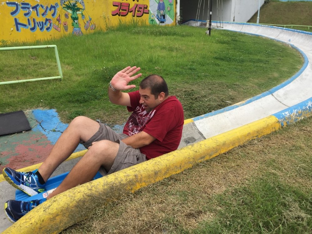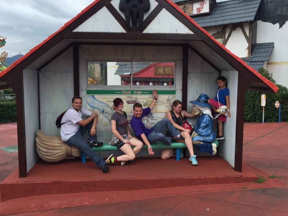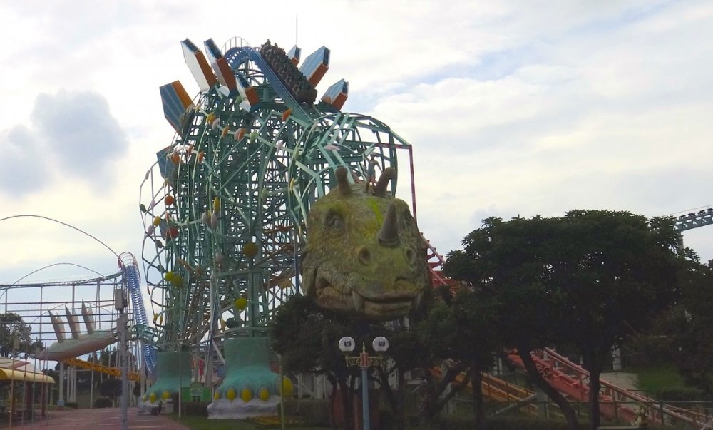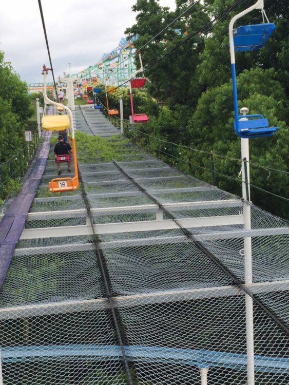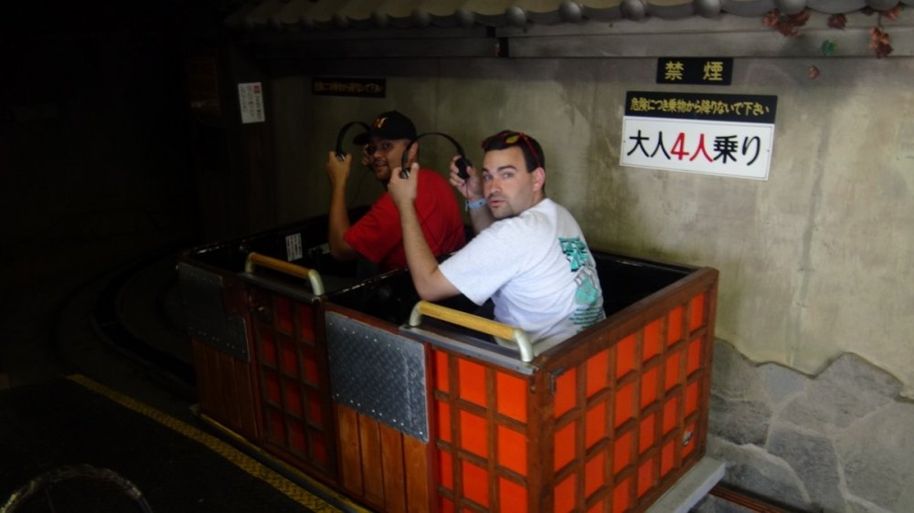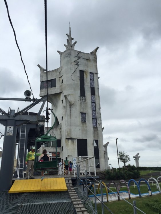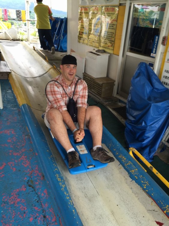 6. We are live tweeting about our adventures in Japan so follow along on Twitter @themeparkreview - Our next stop was Mitsui Greenland! This is a BIG update, so I'm going to let the photos do most of the talking, but I will say that this is one of my favorite "amusement parks" in Japan. Such a great place with SO MANY rides, and a huge variety as well! The park is an interesting setup as most of the rides are owned by different people. While they have a "pay one price" option, your wristband is scanned at each ride and I'm assuming that the operators get a small cut of each time someone rides or takes part in their attraction, as the operators are always trying to come up with unique ways to get people on their rides, and also ride multiple times. Onto some photos! Traveling by train is the BEST way to see Japan! It's amazing how awesome their rail system is! Today, Russell is playing the part of "old man with the cane." I love these signs on the trains! So amazing! From the train station to the park, we travel by taxi Amazing Race style! Arriving at the park, the GIANT Ferris Wheel dwarfs everything else at the park! Yay! TPR welcome sign! Time to hang out and have some fun! I love the look of this park! They have such a random collection of coasters and flat rides here. Of course, Joe goes for the powered kiddie first! Sadly, the Vekoma suspended coaster was closed today, but that's ok, there is plenty of other rides to keep us busy! The dual-track sit down/stand up Togo is actually a lot of fun! And they have a ban on selfie sticks at this park, which we fully endorse! Here's the stand-up train! Here's the sit-down. Oddly enough, this ride is actually REALLY GOOD! Unlike the Togo installations in the US, most of the ones in Japan are fairly smooth and very rideable! I love how Mitsui includes some games like archery into their pay-one-price ticket! Yes, they hand you a bow and arrow! And you shoot! Not many of us are good at it, but when a park hands you a bow and arrow...for free...you don't complain! Yay for Sphinxy: The Ride! In honor of Jurassic World, we are going to get eaten by Gao the dinosaur! Gao is one of those funky Japanese "jet coasters" that's actually pretty damn big, very long, but sort of doesn't do much. They are all fun, but feel like a "huge mine train." And of course on Gao, you get eaten by the dinosaur! The theming is great on this ride! And some of the track sections sure are... "funky!" Gotta love the front of the train with the dinosaur driving it. And yes, the headlights actually work at night! Next up...spinning! Jack and family managed to spin a LOT! Russell hanging out with some of his favorite old buddies. At the top of the hill was a really whacked out haunted walk through and the alpine slide. After walking up what seemed like the amount of stairs that would take you to space, you see cute and funny scenes like this. And some seriously creepy stuff that will haunt your nightmares for quite some time. The girls decided not to be traumatized by the 74 thousand stairs and creepy images, so they did the kiddie swings instead. Goal this year...don't send anyone to the hospital! Already we are doing MUCH better than TPDave and Scottish Steve did on our last visit! "Hey look! All my skin is still in tact!" This is what Scottish Steve and TPDave DIDN'T do on our last visit! No one fell off the sled... ...No one left pieces of human flesh on the track! Success!! "No pictures, no pictures! Please contact my agent!" All that's left of the old shuttle loop is one loop....still kind of want to ride it! lol BEST part of this park? Japanese McDonalds! Best part of Japanese McDonalds? Shaka Shaka Chicken! Yes! It's still here! This is seriously a highlight! Not sure why this never made it to the USA, but a bastardized version did make it to Europe. There's the chicken in the bag. You pour in the awesome sauce and you shake the crap out of it! And Ta-Da! You have one of the most glorious, blazing hot fast food items ever created! Yum! I don't know what exactly is going on here... Time for some more random dark rides and things... This one is a shooter with lots of funky Japanesey stuff. This one is a haunted house ride where you wear headphones... The audio portion is actually really well done! And you see screwed up stuff like this... ...and this! Next up was the candle walk-through where you hold a candle and try to keep it as still as possible while things are jumping out at you. The more still you keep your candle, the more points you get! Indoor coaster with random space theming! Yay! Tons of flat at this park. This Starflyer was AWESOME! Got video of it...will post soon! They also had one of these awesome Togo Paratrooper/Enterprise rides. They lock the seats in place while they swing and you get a really bizarre ride out of it! Yes! Chair lift of death! One tiny seat - no restraints! This translates into "Sit your ass down...don't fall. Thank you!" And yet another park where they just hand you an animal to hang out with! While this guinea pig was not presented in a basket, it was still cool! They have dogs in their petting zoo! Yes! Most Japanese don't have bigger pets because of smaller living areas. So they are in the petting zoo! Still one of my favorite coaster views - Sitting behind a dinosaurs butt while ascending towards and GIANT Ferris Wheel! Really do love the theming of this ride! Weird how the dinosaur is going to get eaten by the dinosaur! Such cannibalistic creatures! A little more of the layout of Gao. Jack doesn't like Ferris Wheels...at ALL...so we are taking him on as many as we can this trip, because we are really nice like that. The view of the park is fantastic! Obviously, as you can see, Jack agrees! lol Another view of Gao.... And yes, they have an Ultra Twister here...and we will get to that in a moment... This Ferris Wheel is about 350 feet all...and it's AWESOME! Here's the Mitsui hotel...looks kind of cool. Jack did it! 350 feet up, a