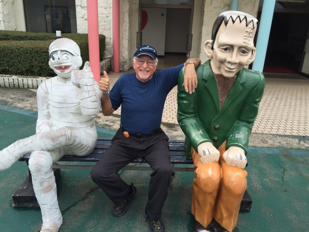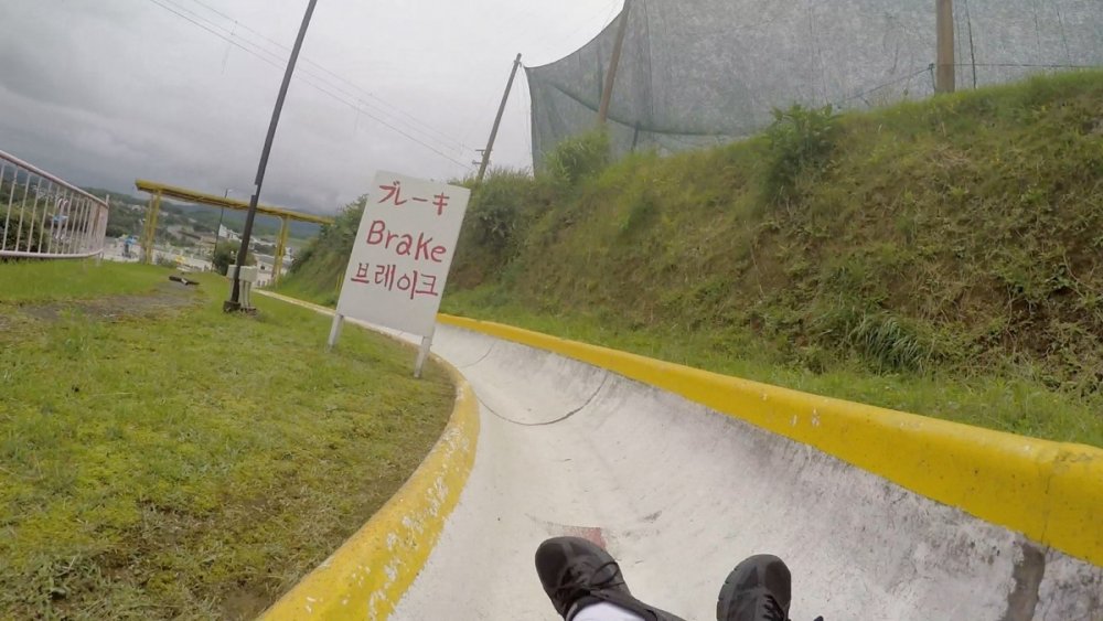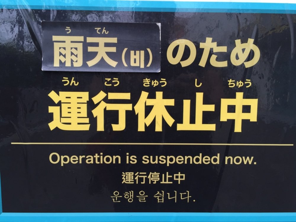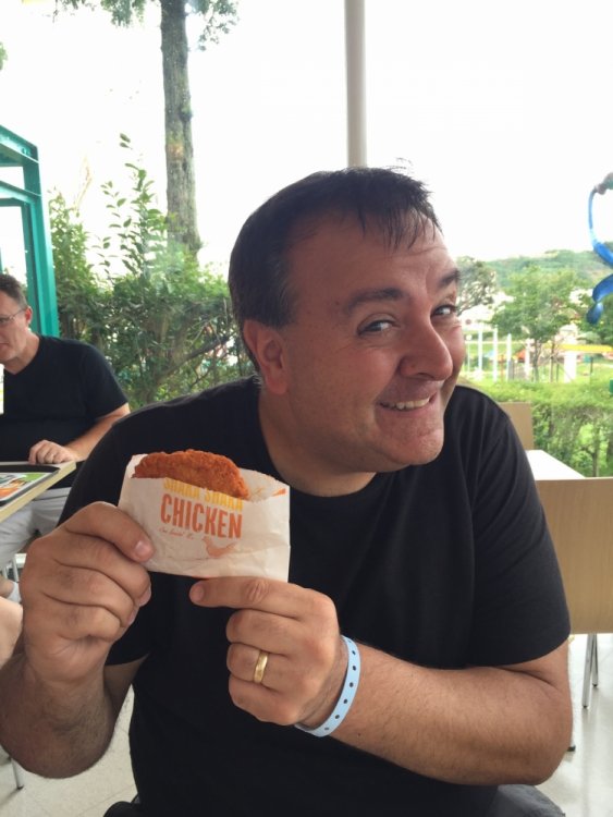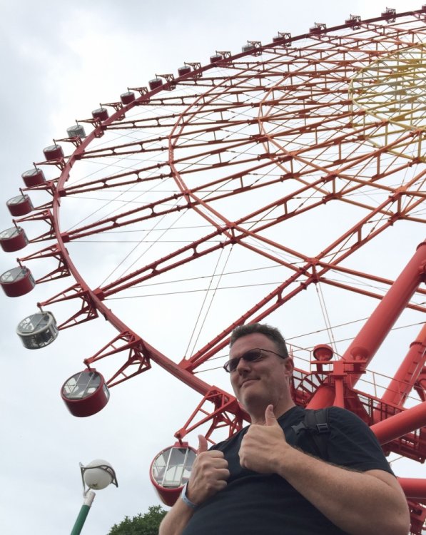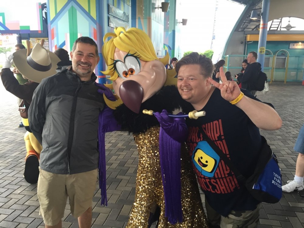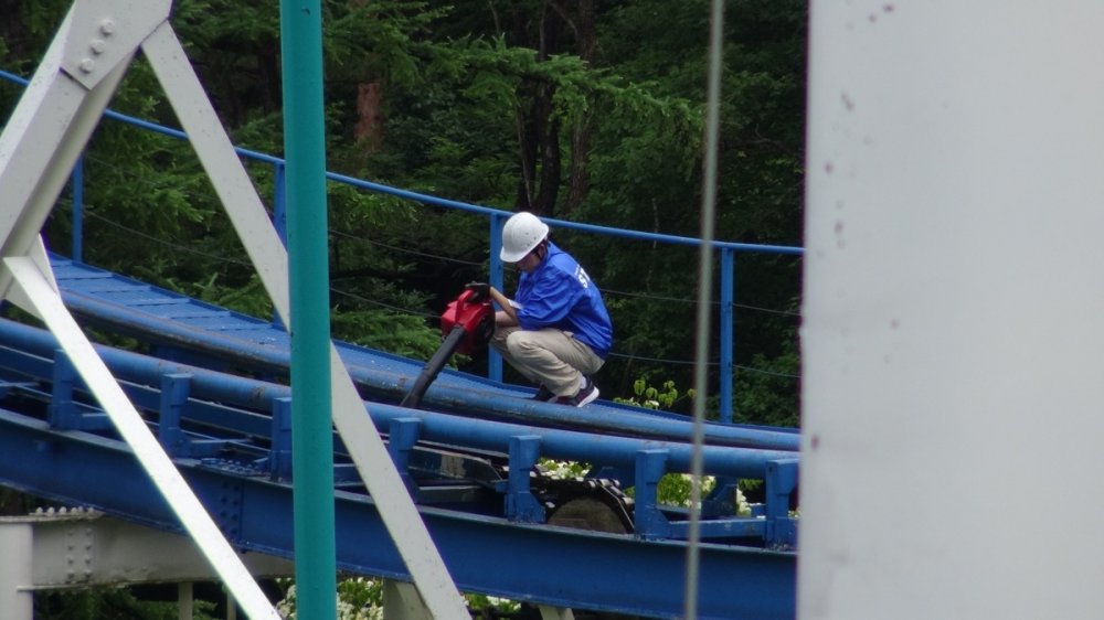 6. We are live tweeting about our adventures in Japan so follow along on Twitter @themeparkreview - Our next stop was Mitsui Greenland! This is a BIG update, so I'm going to let the photos do most of the talking, but I will say that this is one of my favorite "amusement parks" in Japan. Such a great place with SO MANY rides, and a huge variety as well! The park is an interesting setup as most of the rides are owned by different people. While they have a "pay one price" option, your wristband is scanned at each ride and I'm assuming that the operators get a small cut of each time someone rides or takes part in their attraction, as the operators are always trying to come up with unique ways to get people on their rides, and also ride multiple times. Onto some photos! Traveling by train is the BEST way to see Japan! It's amazing how awesome their rail system is! Today, Russell is playing the part of "old man with the cane." I love these signs on the trains! So amazing! From the train station to the park, we travel by taxi Amazing Race style! Arriving at the park, the GIANT Ferris Wheel dwarfs everything else at the park! Yay! TPR welcome sign! Time to hang out and have some fun! I love the look of this park! They have such a random collection of coasters and flat rides here. Of course, Joe goes for the powered kiddie first! Sadly, the Vekoma suspended coaster was closed today, but that's ok, there is plenty of other rides to keep us busy! The dual-track sit down/stand up Togo is actually a lot of fun! And they have a ban on selfie sticks at this park, which we fully endorse! Here's the stand-up train! Here's the sit-down. Oddly enough, this ride is actually REALLY GOOD! Unlike the Togo installations in the US, most of the ones in Japan are fairly smooth and very rideable! I love how Mitsui includes some games like archery into their pay-one-price ticket! Yes, they hand you a bow and arrow! And you shoot! Not many of us are good at it, but when a park hands you a bow and arrow...for free...you don't complain! Yay for Sphinxy: The Ride! In honor of Jurassic World, we are going to get eaten by Gao the dinosaur! Gao is one of those funky Japanese "jet coasters" that's actually pretty damn big, very long, but sort of doesn't do much. They are all fun, but feel like a "huge mine train." And of course on Gao, you get eaten by the dinosaur! The theming is great on this ride! And some of the track sections sure are... "funky!" Gotta love the front of the train with the dinosaur driving it. And yes, the headlights actually work at night! Next up...spinning! Jack and family managed to spin a LOT! Russell hanging out with some of his favorite old buddies. At the top of the hill was a really whacked out haunted walk through and the alpine slide. After walking up what seemed like the amount of stairs that would take you to space, you see cute and funny scenes like this. And some seriously creepy stuff that will haunt your nightmares for quite some time. The girls decided not to be traumatized by the 74 thousand stairs and creepy images, so they did the kiddie swings instead. Goal this year...don't send anyone to the hospital! Already we are doing MUCH better than TPDave and Scottish Steve did on our last visit! "Hey look! All my skin is still in tact!" This is what Scottish Steve and TPDave DIDN'T do on our last visit! No one fell off the sled... ...No one left pieces of human flesh on the track! Success!! "No pictures, no pictures! Please contact my agent!" All that's left of the old shuttle loop is one loop....still kind of want to ride it! lol BEST part of this park? Japanese McDonalds! Best part of Japanese McDonalds? Shaka Shaka Chicken! Yes! It's still here! This is seriously a highlight! Not sure why this never made it to the USA, but a bastardized version did make it to Europe. There's the chicken in the bag. You pour in the awesome sauce and you shake the crap out of it! And Ta-Da! You have one of the most glorious, blazing hot fast food items ever created! Yum! I don't know what exactly is going on here... Time for some more random dark rides and things... This one is a shooter with lots of funky Japanesey stuff. This one is a haunted house ride where you wear headphones... The audio portion is actually really well done! And you see screwed up stuff like this... ...and this! Next up was the candle walk-through where you hold a candle and try to keep it as still as possible while things are jumping out at you. The more still you keep your candle, the more points you get! Indoor coaster with random space theming! Yay! Tons of flat at this park. This Starflyer was AWESOME! Got video of it...will post soon! They also had one of these awesome Togo Paratrooper/Enterprise rides. They lock the seats in place while they swing and you get a really bizarre ride out of it! Yes! Chair lift of death! One tiny seat - no restraints! This translates into "Sit your ass down...don't fall. Thank you!" And yet another park where they just hand you an animal to hang out with! While this guinea pig was not presented in a basket, it was still cool! They have dogs in their petting zoo! Yes! Most Japanese don't have bigger pets because of smaller living areas. So they are in the petting zoo! Still one of my favorite coaster views - Sitting behind a dinosaurs butt while ascending towards and GIANT Ferris Wheel! Really do love the theming of this ride! Weird how the dinosaur is going to get eaten by the dinosaur! Such cannibalistic creatures! A little more of the layout of Gao. Jack doesn't like Ferris Wheels...at ALL...so we are taking him on as many as we can this trip, because we are really nice like that. The view of the park is fantastic! Obviously, as you can see, Jack agrees! lol Another view of Gao.... And yes, they have an Ultra Twister here...and we will get to that in a moment... This Ferris Wheel is about 350 feet all...and it's AWESOME! Here's the Mitsui hotel...looks kind of cool. Jack did it! 350 feet up, a