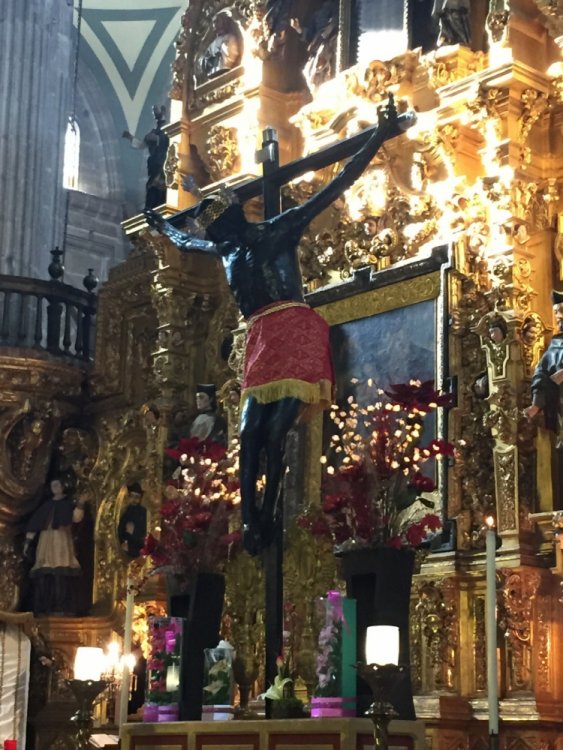 Today was "culture day" for our Mexico trip. Here's some photos from Mexico City... Yup the "punch buggies" are still alive and well here in Mexico! And so is Blockbuster Video, apparently! lol Saw quite a few of these today... And Kristen was very happy to continue the punch buggy game she started on our 2013 trip! Today's culture day starts off with the famous Teotihuacán pyramids! Our tour guide Sergio explains how the pyramids came to be. He drew a picture of what the tunnel system looks like, but I'm pretty damn sure that's a penis! And so we start the climb to the top... A view from about half-way up. We made it to the top! And so did *most* of the group! Why is going down almost as hard as going up??? This entire city is thought to be built around 100 B.C. - So it's short, it's much older than you and me. Sergio shows us how you can make some cool artwork out of crushing bugs eggs and splattering their blood everywhere. Sound cool? Sure looks pretty! Pyramid Stuff... Inside the pyramids... I found this AWESOME treasure for sale at one of the booths. There are so many things that can be said about it, but I'll just take solace in knowing it will be placed right on my shelf in the TPR office! Lunch included some AWESOME Mexican food! Yum! These dudes played some classic Mexican folk songs like "La Bamaba..." That's a lot of pricks! Taco & Beer! Do you need anything else? Love all the colorful houses all over Mexico City. We are back in the city, checking out some cool buildings and stuff. This is a theater. Tall buildings and some that are leaning and sinking...yes, just like Magnum. Boobs! I see BOOBS!!! This is a post office. It kind of looks like the money exchange place in Diagon Alley. It's old and pretty. Daniel Craig was JUST HERE filming the next James Bond movie! Seriously! Google it! I'm like 99% sure I just witnessed a drug deal between the dude on the left and funny hat guy. More cool looking buildings. Still trying to figure out what's happening on the left hand side with those two dudes. They took us out onto a ledge over Mexico City! Caesar! Don't jump!!! Streets and old buildings. LOTS of people down there! Now THIS is my kind of culture! Buildings and things... This is something old. Oh, good, it's a church, I'm sure I'll be VERY welcome in here! This is giving me flashback nightmares from my catholic upbringing! It's pretty and catholic. Mexican Jesus candles were everywhere. Yo. It's black Jesus. More catholic dudes. I probably would know this guys name if I paid attention in school, but instead I played video games. Apparently this chick is important. Time for dinner and margaritas!!! Yay!!! Everything I know about Mexico I learned from Epcot's Donald Duck Boat Ride! lol -