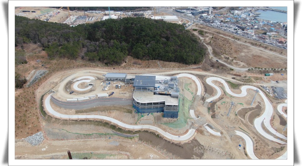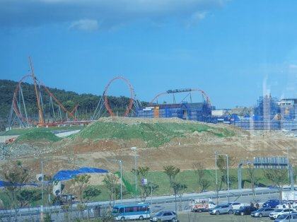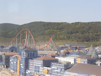 Track work is moving along on the Blue Fire clone. The first spike of the Power Splash has also been installed which you can see in the corner of the next door's Luge Park construction picture below which interestingly lists Lotte World for an August opening.... Not sure if they're just confusing that opening with the Luge Park because it seems there's still a lot of work to be done. Source Source -