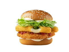 You see them pretty commonly on the menu in Asia. Mcdonalds uses Mozarella sticks in their chicken burger: But most have patty style. Here's Burger Kings current one: And Lotterias: