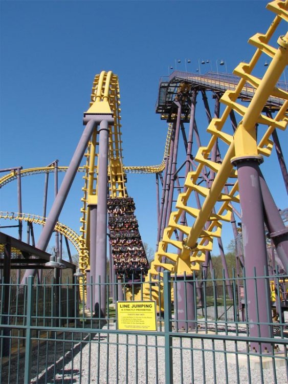 The meet, in my assumption, was an overwhelming success. It seemed every aspect of a true TPR meet was there: coasters, minimal wait times, overwhelming numbers of stupid cheerleaders, Vekoma "fun", everything you'd need to a TPR trip. Not only that but Batwing still opened even though the sign said it was closed. I consider that ERT. Unexpected ERT, but ERT non the less. Here are my set of pictures. The ever present SFA graffiti What's a twicket? The lovely SFA tap water. I know I shortened my life span by drinking this. "I think you're in the splash zone" - Robb Well, everyone was thinking it. My lovely meat sammich, in which I waited a half an hour for. Longest wait for the day too. Didn't know you drove Robb. Everyone's getting their kiddie coaster credit. The SFA lagoon...yeah. The Wild One, a classic coaster, but one that really could use the fancy technology of banked turns. owchowchowchowchowchowchowchowchowchowch My 100th credit. Woe is me. Well, let's get this over with. Batman defeated the Joker's Jinx, so it was closed all day. The trains were sitting off the track, which makes it moderately difficult to ride. Batwing opened?!? Awesome. The loop seemed to be extra forceful today. Take that pretzel loop! Take on the revolutionaries! This is a foreboding sight. Too...many...cheerleaders!