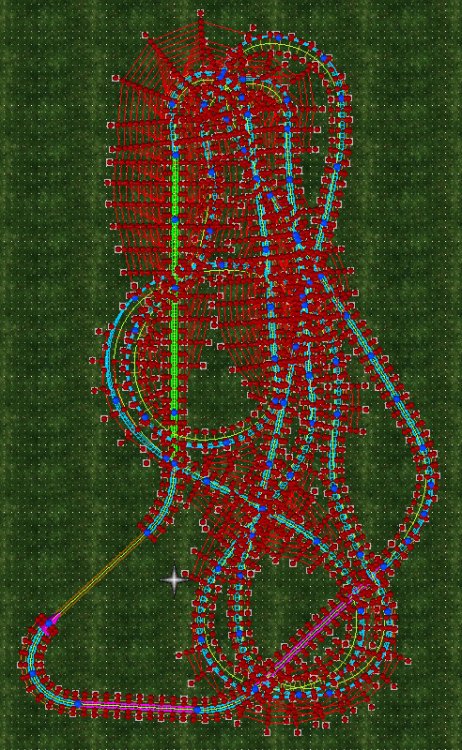So a few weeks ago while admiring Balder and envying everyone on the Scandi trip I had the idea to make a Balder type Intamin Prefab; Something less that 125 feet but packs a serious punch. So what I came up with is like balder but has smaller elements similar to those of T-Express. Overall I just tried to create an Intamin feeling woodie so I hope you enjoy. I'm still going to make a few finishing touches later, like smoothening, supports, etc.... but for now I'm putting it here open for critique. I'm calling it "Hastighet" because according to Google translator that's "speed" in Swedish, going with the Scandinavia theme. It's around 115 ft tall and 2800ft long. It's record-breaking for the highest banked turn, since there is one overbank at 130 degrees. Other than that it's like all the other four Intamin prefabs, it never lets up a second until the break run and has breathtaking air time. So here are editor pictures. My screenshot thing is all wonky so I can't get the actual simulator pics, but I've included the track at the bottom. Hastighet.nltrack Top view. Front View. My that's a mess. Side View First drop, and that overbank I was talking about. I might have to tone it down a bit, and fix the supports. Twisty turnaround section, including three overlaping air hills. Overview.
