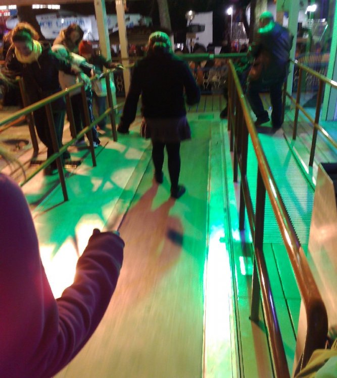 Yesterday I caught the train to London and visited the world famous Camden Market for a few hours as I had not been there for 6 months, it was very busy (seemed like ½ of London was crammed down the walkways), and good to see all the different cultures of people enjoying themselves. http://www.camdenmarkets.org/id2.html A map of the markets: http://www.camdenmarkets.org/id1.html After buying a few Xmas presents I caught the tube to Harrods to buy my family’s presents, after I’d finished it was 5pm and off to the main event of the afternoon / evening. http://www.hydeparkwinterwonderland.com/ All the ride had tokens and each token cost £1, the large rides were 4 x tokens which = £4 a go each person, A bit steep in price but that's the cost of London. Started with the Haunted Mansion, which was excellent, it promises to offer even more frights than last year, or whizz down the 60m Giant Toboggan Snow Slide - there is even a ski pulley to take you up to the top again! 2008 sees the introduction of the Ice Palace Mirror Maze - which has never before been seen in the UK, the attraction that promises to both puzzle and amaze! Or take a jaunt on the Sleigh Ride or Christmas Coaster (a very fast and nicely painted “Dutch” owned S.D.C / Galaxi) to really put you in the Christmassy mood. Back by popular demand the Snow Ball Bungee Dome where daredevils take the opportunity to show off their acrobatic skills under the igloo canopy whilst others look on with amazement. Along with the Wave Swinger, themed simulators, adult carousel, skill games is the event, which will surely fill you with festive joy! Some pictures of the afternoon / evening, no pic's of the market though and sorry for the out of focus ones, still adjusting to my new camera phone. Flat powered walkway which a tech guy sped up for the older guests Inside the Crazy House, the outside of the drum spins and the walkway rocked from side to side. Made your head spin. Other end of the Haunted Mansion The Haunted Mansion, seemed like a small hanging coaster Middle of coaster, there was some "Airtime" on the 2 drops Nice lights One of the best examples of an S.D.C / Galaxi I've ridden Lovely looking Slide Harrods at night Lovely painted Trains / cars Butt View - 4 sets of cars running at once