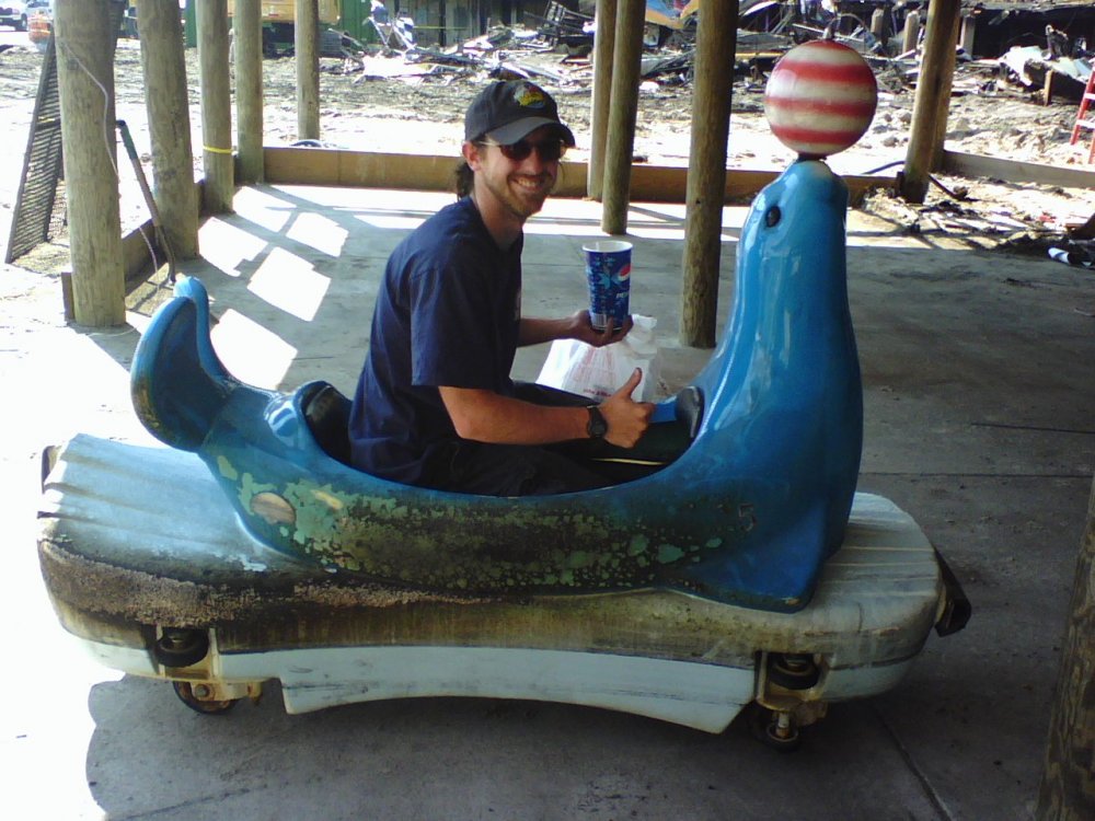 So I was just cruising some old pictures on my computer and came across some pictures for the Moreys Piers fire from 2008. The fire happened at night after closing on 6/16/2008. A good chunk of the piers was damaged due to the fact the Wildwood fire department couldn't get their trucks on the beach. Luckily no coasters were harmed from the fire. On the right is the employee bathroom and on the left is the bumper cars. Here is the burnt bumper cars building. The brand new forklift got melting pretty bad. Looks like the steering wheel is made of chocolate. There is a view of the bathroom again and the Moreys piers offices. The fire got really close to the hazardous material storage area. This fence went up faster then the fire did. New and improved bumper cars now with a cliff. The guess your weight station was pretty hot that year... The little zamperla seal flume was making in throughout the fire ok until a fireman realized it was full of water. Yep. Destruction from a distance. partially removed ride. The bumper cars... Uhhh... i mean a beautiful view of the ocean. This guy did all the work. Hes some sort of superman. My last ride