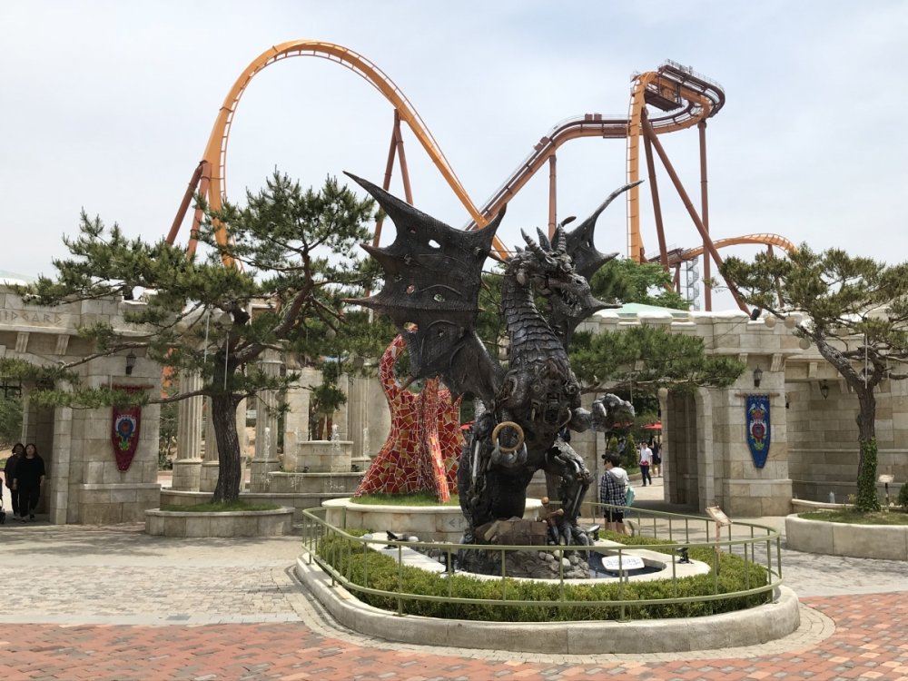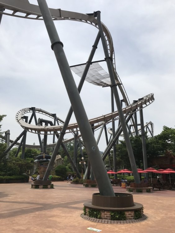 18. Hi there! I had the opportunity to visit Gyeongju World this past weekend and see their new expansion, Dragon Valley, which includes their new B&M Dive coaster, Dragon. Gyeongju World is located in the southeast part of Korea and is around a 2.5 hour KTX (high speed train) ride from Seoul. Gyeongju is one of the more historically-significant cities in Korea and has a ton of cultural sites to see including palaces, tombs, and museums. If you do visit Korea, do yourself a favor and spend a few days there. So overall, Gyeongju World did a nice job with this expansion. In addition to Dragon, the park added a Zamperla Air Race, looping frisbee, and...a Dunkin Donuts! Having ridden Griffon at Busch Gardens several times already, I didn’t expect anything different from Dragon. However, I was quite surprised. The transitions seemed to have a bit more ‘snap’ to them. Plus, the park did a fantastic job with the entry and station theming. The trains, unlike Griffon, are 8 seats across but do also feature the ‘old’ B&M restraints. I first visited Gyeongju World 3 years ago and while it was a nice park, I found myself satisfied and ready to leave after 2-3 hours. I’ve lived in Seoul since 2012 so I’ve honestly become a bit bored of T-Express (gasp!) and Lotte World. Having two B&M’s in one park now makes this a ‘must stop’ for coaster nerds visiting Korea. So this TR starts at an English school on a Saturday. I teach a debate class to a bunch of rascals (term of affection) and today our book topic was, “are girls better than boys?” This little guy, Tony, was adamant that girls are not better than boys. After much discussion, it was decided that boys are actually better than girls. #Democracy After diffusing a small spat between Korean elementary students, I hopped on the high speed train down to Gyeongju. A one way ticket was around $40 My Airbnb for two nights Any Airbnb that provides candy and ‘mystery’ tablets is fine by me. Yolo! There’s an old Korean folktale about a boy who wets his bed. To shame him, his parents make him wear this basket on his head while he goes to the neighbor to request salt to pour on the soiled mattress. Luckily, I didn’t wet the bed...this time Ok enough culture! So when you get to the park, you’re greeted by Dragon which dominates the park entrance plaza. The nice ticket lady looked at me and asked, “are you a foreigner?” I said yes and was quickly given a 30% discount. But first!... Coffee! The Starbucks across the street provides a nice view of the new coaster. The entrance way Gyeongju World loves you Take a right and you’ll find the entrance to the new Dragon Valley. Next up was Dragon Race. This was my first time trying one of these and....yeah, they’re not for me :/ Next up was Crack: The Ride....err Klake, I mean. I was unsure of trying Crack, but many people seemed to enjoy it and were acting all crazy. I rode it and loved it. In fact, I became addicted to Crack! It’s seriously awesome!...be sure to try it. While on Crack, something looked awfully familiar. Hmm... After getting off Crack, I was feeling quite parched so I decided to stop in to ye olde Dunkin Donuts for a beverage. As my friend asked, “why would you possibly need a straw for that cup of chicken?” Answer: there’s a small cup of chicken on top of the cola (or “pop” where I’m from) and it’s awesome! The park’s Ferris wheel gives you great views of Dragon and the rest of the park. Overview of the park I’ll be with you shortly, Phaethon Hey Tagada’s are always awkward fun. The park also has dogs and mechanical livestock for you to ride around on. Next up was Phaethon. It’s a decent invert. This had the longest line of the day so I only rode once. So after riding Dragon a few mores times and doing Crack again, I decided to head out after spending about 4.5 hours at the park. They have a flume, rapids, and a wave ride but I wasn’t in the mood to get wet. Overall, it’s a nice park that I recommend visiting if you’re in Korea. And remember, Gyeongju World will always love you! Thanks for reading!