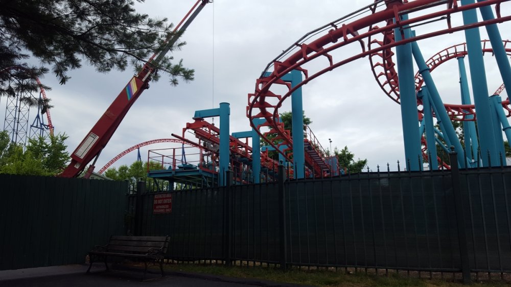 Thanks for the replies! Day 2: Instead of writing a long-winded TR detailing every movement I made today, I am just going to do a ride count and random notes and observations from the day... Wicked Cyclone: 5x Superman: 2x Joker: 1x NESS: 1x Thunderbolt: 1x Batman: 1x Pandemonium: 1x Goliath: 1x Blizzard River: 1x Typhoon: 2x Tornado: 1x Bonzai: 1x -Mind Eraser was closed both days on this trip. In one of the photos below I snapped a crane next to one of the trains on the transfer track with a couple of employees working on it. -Superman was up and down throughout the day. One of the times it was down a crew was mounting a camera on the front of the train for what I assume is for on-ride footage. I got a back of the train ride while the camera was mounted. We were told we were being filmed for a TV spot, which I believe will be for a commercial as all of the crew were SF employees. The ride broke down around 6pm and never reopened during the rest of my stay (left around 7). -Lines were mostly moderate. We did opt for a standard flash pass for the 2nd half of the day, which definitely helped with some of the lower capacity credits (Thunderbolt and Pandemonium specifically) and WC rerides. -Once again we got purple side of Joker and did not fully flip. And once again it was a great ride with a 3/4 flip, which is the best sensation I have gotten on either model I have experienced. -WC and Superman were hauling ass just like last night. -GAdv's HH could really use a water coaster like Typhoon. That ride is an absolute blast and I can safely say I prefer it to many regular coasters out there. SFNE's HH in general is a very solid waterpark. -JB's was fantastic! I really enjoy the sports bar feel of the inside and the food was really solid. GAdv would really benefit with a similar restaurant. -We left 2 hours early to see Spiderman at Rave Cinemas in West Springfield, which was a last second decision. I am so happy we made that call as the movie was awesome. Lots of humor and a very entertaining movie overall. Definitely a perfect cap to a great mini-vacation! Pics below. Thanks for reading! -
