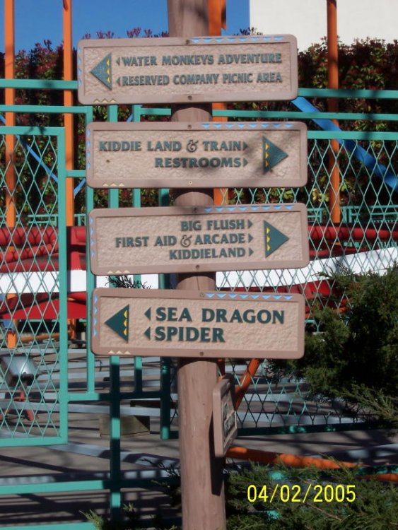 Actually, it was a small leak, and I'm sure it was there before I rode it, I think, I hope I didn't break it. Those Ghetto folk really stood out at the park, and his pants were, well VERY low You can still see the snow on the mountains, and it snowed here just last week, but it was about 70 degrees while we were there alright here's a few more This is a non-stop ride, with TONS of airtime Wow, look park sinage, anyone who has been to this park knows if you just look around you can find anything, and why is kiddyland listed twice? You can see how the rides are squeezed into the roller coaster