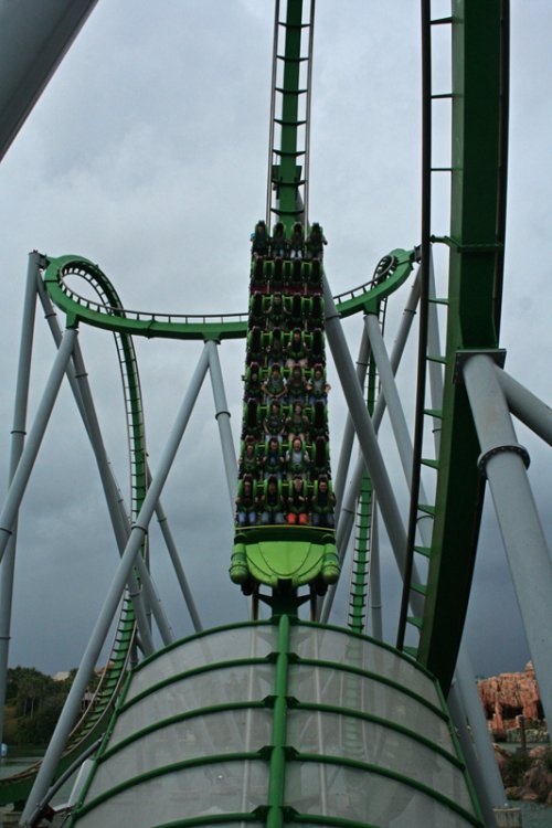 18. Day 4: Universal Orlando Resort First of all, thank you for your patience with me. I'm well aware of my sloth-like speed at these updates. I'm sure you hate hearing excuses, but that makes me want to use them even more, so here they are: 1) I got some dust in my camera sometime last fall, and I have yet to figure how to get it the heck out. I've tried special cloths, special brushes, and everything else special that the camera store people could sucker me into buying (I've since returned it all, but still...). I could send it off for a professional cleaning, but it's $65 and I refuse to spend that much money on something I could (theoretically) do myself. Anyway, the downside of my frugality is that I have half a dozen black spots in every single photo I take, and I have to go through each one individually to photoshop the spots out. And I have a lot of photos. You can imagine the fun. 2) School started last week, and that always puts me in an unmotivated funk. It's a boring excuse, yes, but true and reasonable nonetheless. 3) I keep stalling, hoping that tomorrow - yes, maybe tomorrow! - TPR will magically get a nifty multi-photo uploading tool like facebook or myspace, which would reduce my TR-making time from 37 1/2 hours to 5 minutes and 14 seconds (I've done the calculations). Come on, Robb...you can do it! I will personally bake you a pie from scratch and send it to you if you make it happen. But on to the report. I got to do Universal all by my lonesome that Sunday, which was fine by me because through my numerous visits, I have come up with a very specific and efficient way of conquering the two parks, and I don't like anyone else's wants or desires dragging me down (I know, I'm so sweet, right?) Of course, the weather ended up being a giant monkey wrench in my oh-so-efficient plan - the rain came pouring down around lunch-time, it never let up, and I called it a day around 3:00, but with there being only about 5 people between the two parks all day, I was able to get almost everything in except for Dueling Dragons (which was closed most of the time due to the weather anyway) and all of Toon Lagoon. And thus concludes the Universal Orlando Resort portion. Magic Kingdom to follow. Some pretty buildings to wrap us up... Um, yeah, things were about to get real ugly, real soon. Psh...stupid Poseidon. DD was running again as I left, but I was cold and wet enough as it was. Plus, I saw a lightning bolt in the distance, so I knew it wouldn't be open much longer. Well, after about three hours of putzing around a couple of shops hoping for the rain to stop, I decided to cut my losses and call it a day. I went back the way I came, so I still didn't go through Toon Lagoon, but it's not my favorite land, so I didn't feel like I was missing much. This! Tadaaa! If you don't think that's hot, you better check your pulse. This is some Dino DNA they mixed with mine to create... I'm no paleontologist, but I'm pretty sure those temporal fenestrae aren't supposed be filled in. By the time I made it here, I was soaked to the bone. Haha, get it? BONE? Like dinosaur bones...? Ha...ha? Yeah? :/ After taking this picture, I then proceeded to make out with this sign. YES. After a while, I realized that the rain wasn't going to stop any time soon, so I made my way deeper into the park by dashing from covered area to covered area. This is the view from one such spot. I suppose I could have done this Poseidon's Fury thing with it being entirely indoors and all, but I was pretty peeved with them for turning off the water vortex tunnel a few days previous. Besides, I NEVER got over them changing to that stupid Darkenon story line a couple years back. Wasn't Poseidon the bad guy originally? And now they want us to ROOT for him against the lamest-named fictional character to have ever fictitiously existed? PUH-LEAZE. Yeah, no, sorry Universal. I'm starting a one-woman boycott against this attraction until you fix this mess. Awww, see?! Though as cute as he was, I still couldn't bring myself to buy him. Kinda regret that now. But if I have any fans out there, or maybe even a generous stalker or two, this would be an excellent present you could surprise me with. I'm sure you could find one on ebay. I'd give you my address so you could ship it to me, but, unfortunately, I'm not stupid. Still, a TRUE stalker would find out where I live. That's kind of their function, right? And I found Horton! He's so cute in stuffed form! I ducked into this shop for at least a half hour hoping that the weather would clear. Ah, then the rain came. It's nice too see that despite his depression over the Truffula trees, the Once-ler still has enough cheer within himself to decorate his house for Christmas. They don't allow flash photography on this ride, and since I had to use such a slow shutter speed on my camera, I'm surprised these pictures came out as well as they did. I'd love to work on this ride if for no other reason but to wear that awesome Cat in the Hat get-up. Just another crazy long line. As a huge fan of Dr. Seuss, this land is one of my favorites, despite the fact that it's quite tame, ride-wise. However, I can live without thrills, so long as they make up for it in cuteness. And they do. Oooo....scary dark clouds.... I know you expected to see Toon Lagoon next, but I decided to go back the other way. I'm tricky like that. I think this had about a 10 minute wait as well, but I got to use the single rider line which allowed me to ride 6 times in a row with no wait at all. Word of encouragement out there to the lonely and friendless - sometimes it's worth it. I love this room. That spider is brilliant. It's both decorative and functional, and I'm totally putting one in the living room of my future house. The Spider-Man ride always satisfies the occasional urges I have within me to fight crime against those who break the laws of physics and probability. Yeah, it's kind of a niche field... I think I had about a 10 minut