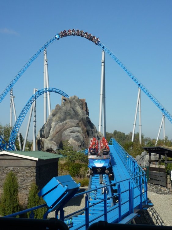 Most of the coasters were at least a 30-50 minute wait during the day, with Blue Fire being the longest. Blue Fire's single rider line is a bit of a waste of time. If the single line is just outside the station then it will take about 50 minutes to get a ride, which is the same time shown on the main line. I think singe rider works best on 4 across seated coasters. I was very impressed though with Blue Fire having 4 cars running over the whole weekend! -