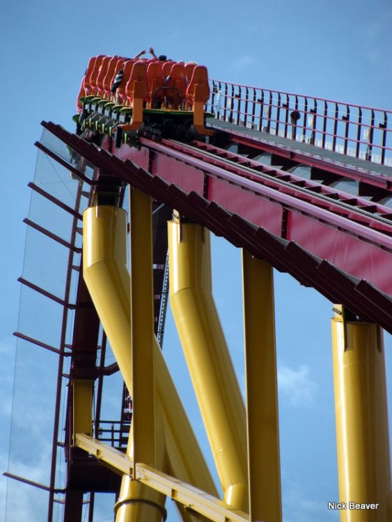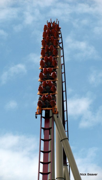 I saw this last night on facebook. The ride seems kinda slow in certain spots, but overall looks like a fun ride. A few things I don't really like about it though is.... -The ride would be much more thrilling and nerve-racking if the train came to a complete stop before the launch and rider's don't know when the train would launch -That trim on the top hat sucks, the cliffhanger effect doesn't really seem to do anything from the looks of the POV -The other trim (MCBR) sucks even worst! This one doesn't really have a purpose to slow the ride down as much as it does But the good things about the ride... -The first inversion (the cutback type element like on Drachen Fire) looks like alot of fun -The zero-gravity-roll is very graceful and probably has some hangtime in it -All the transitions are extremely smooth -The ride's elements flow together -The surf turns or whatever they are called look awesome and create an out of control Voyage type feeling -Those last airtime hills look amazing -I love the colors -