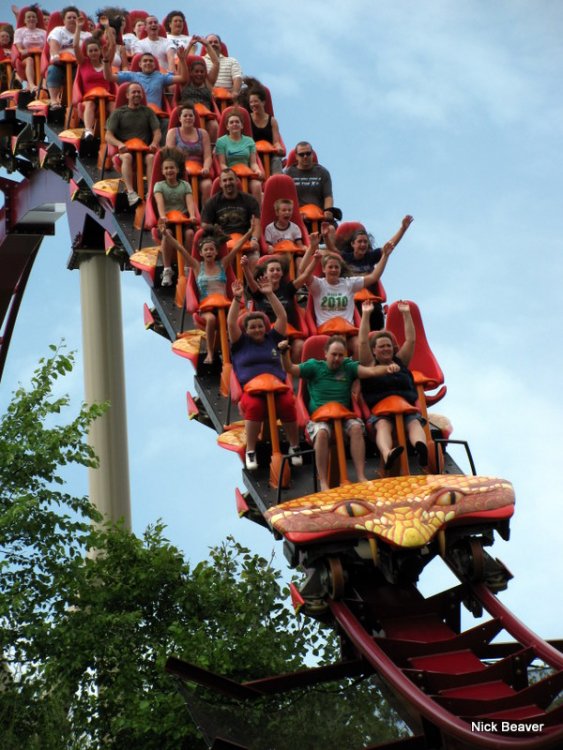 Thanks! If you mean what seat is 2:1, it's the front row of the second car. It's the best because the whole ride your feet are pretty much stuck to the ground (it's that forceful!), and every hill besides the lift hill/drop you get really good airtime! Before I discovered that seat I almost always sat in the back or very front and MF was barley in my top 10, but now it's like #2 or #3 steel. Thanks, yeah I'm already planning my next visit. Awesome, have fun! I wouldn't count on it being open... Thanks, me too. Although Cedar Point is not near my favorite park, I still get very excited to visit and never want to leave. Yes theres many things the park lacks, but they do have Wicked Twister, Raptor, Millennium Force, Maverick, Gemini, Magnum, and Top Thrill Dragster, all really good coasters! I'm pretty sure I saw you. We were in a hurry to get to Cedar Point, but we wanted to get a few rides on Diamondback first (and my friend Zach and Aleesha needed to upgrade to Platinum). I got first train of the day front seat (which lately I've been getting first/last trains every visit for some reason) and it hurt really bad. I've ridden Diamondback in the rain many times, but never in the front. And I never will again! -